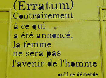 Petite Poissone, a 42-year-old from Grenoble, is a street artist who sticks in the streets with calligraphy that is elegant, tangy or humorous.
