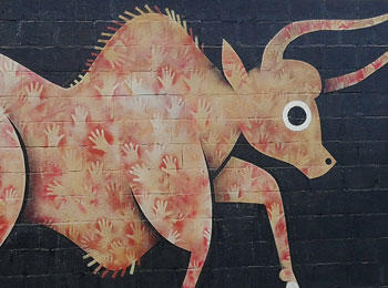 Belgian street artist Joachim paints vibrant murals that look as if they were torn from the pages of a very large children’s book. His illustrative style brings humor and color to walls and structures in cities across the world.