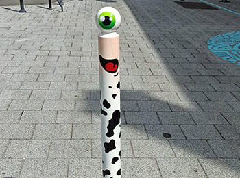 French artist, CyKlop invests public space and diverts the metal posts that populate urban areas. The CyKlop takes his one-eyed character to the streets, in reference to the fantastic creatures of Greek mythology.