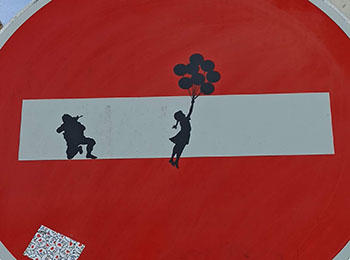 Clet Abraham, born in Brittany, is a French painter and sculptor, active in Italy since 1990, also street artist on road signs.