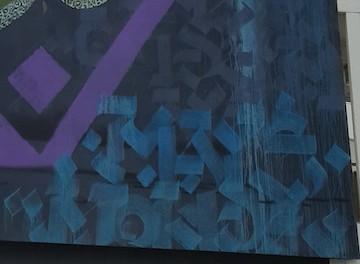 For some time now, Mondé has also been experimenting with volume. He presents a new work of calligraphy on burnt wood, the fruit of a reflection on the transformation of matter, playing with shadow and light.
