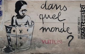 Eric ZeKing is a French street artist. He plays with words and situations. He works by associating images. He offers us a critical and often devastating look at our society. EZK is part of that family of artists who do not have to create to sell, so his works are few in number, but all of high quality and thoughtfully posed. His sharply humorous works undermine propriety, sell at a loss the superfluous jewels of our economy, and are part of the discernment necessary for young people to build themselves on solid foundations.