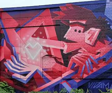 Vidam is a Berlin-based visual artist and illustrator known for his vibrant and imaginative creations. His work is a celebration of whimsical characters and amusing scenes that brim with color, love, and joy, often incorporating popsurrealistic and abstract elements. While his primary canvas is wall design and murals, Vidam also finds great pleasure in painting on canvases, wooden panels, and crafting digital illustrations for clients. As a member of the street art crew THE WEIRD, he adds a unique flavor to the urban art scene. The name "Vidam" is Hungarian for "happy."