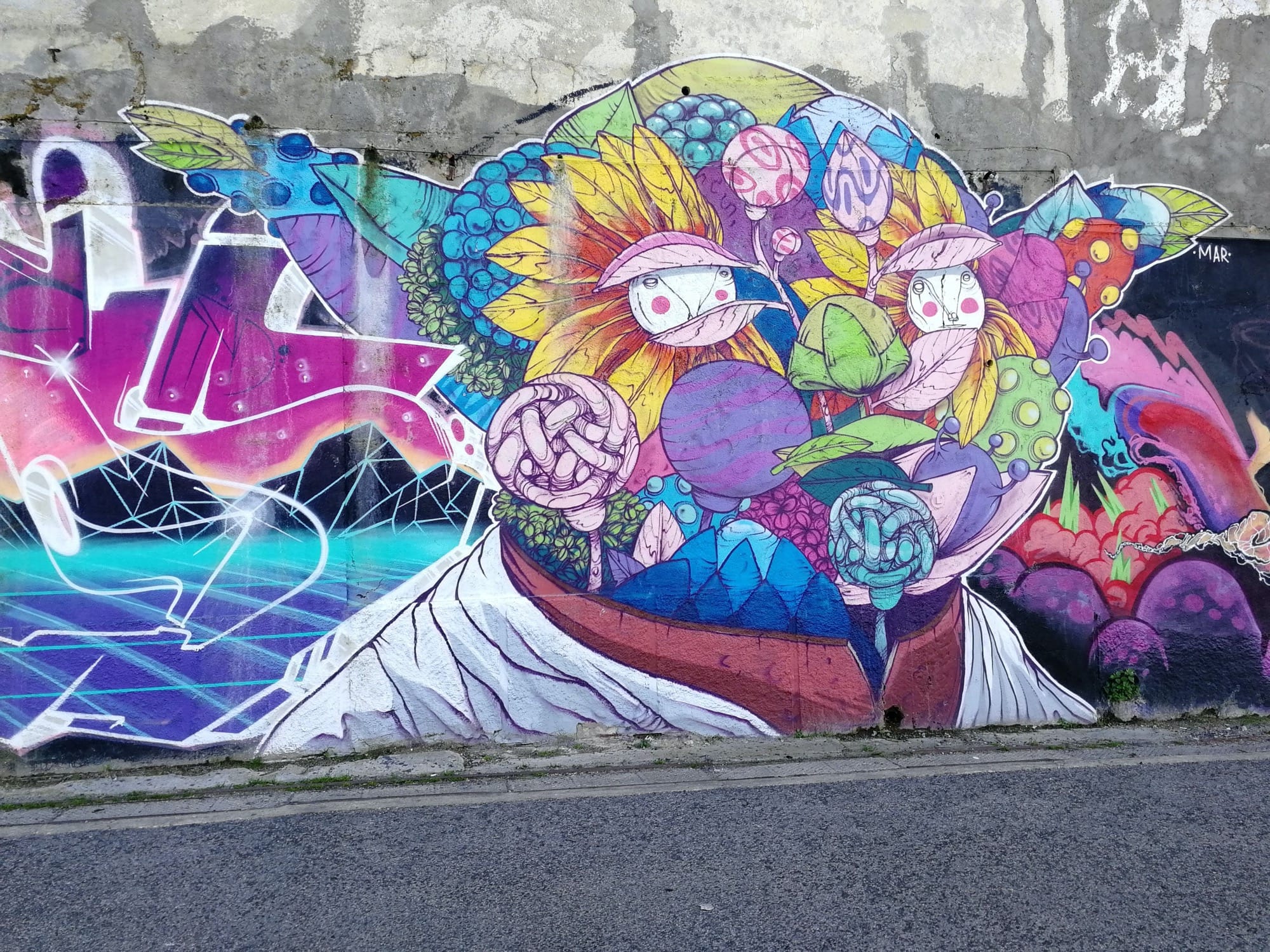 The artwork Yoda colorful is of graffiti type. You can admire it in the city of Almada in Portugal and more precisely here : R. do Ginjal 27, 2800 Almada, Portugal.