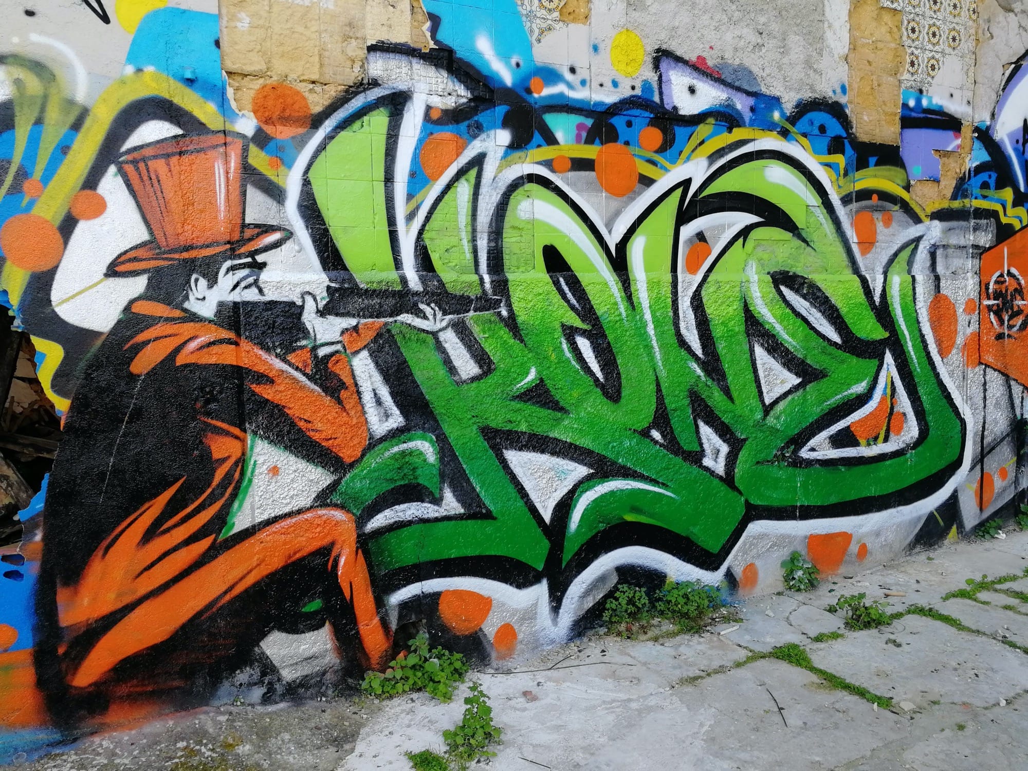 The artwork is of graffiti type. You can admire it in the city of Almada in Portugal and more precisely here : R. do Ginjal 65, Almada, Portugal.