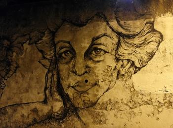 The artwork is of graffiti type. You can admire it in the city of Lisboa in Portugal and more precisely here : Tv. do Monte 66, 1170-111 Lisboa, Portugal.