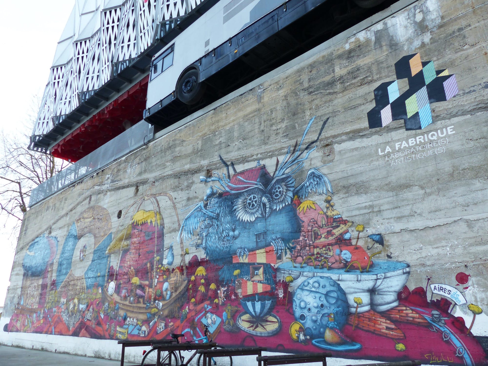 The artwork La Fabrique is of graffiti type. You can admire it in the city of Nantes in France and more precisely here : 8 Boulevard Léon Bureau, 44200 Nantes, France.