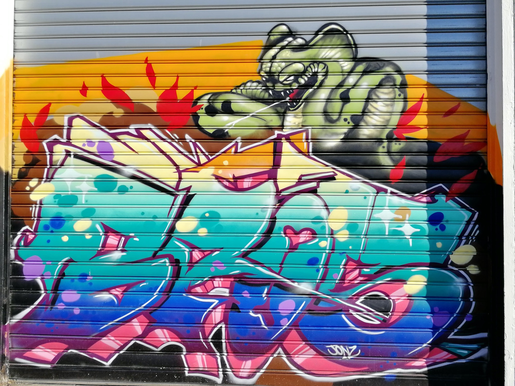 The artwork is of graffiti type. You can admire it in the city of Bordeaux in France and more precisely here : 16 Rue de Belcier, 33800 Bordeaux, France.