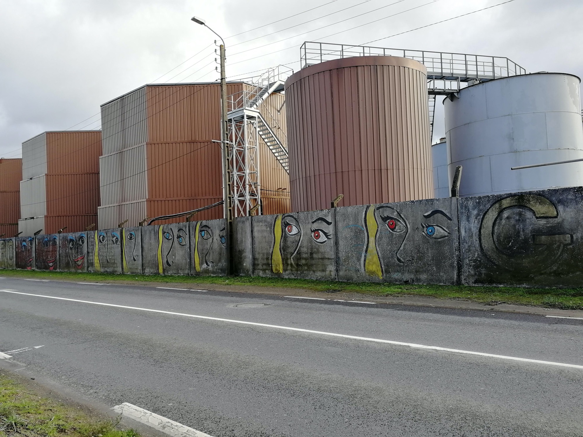 The artwork is of graffiti type. You can admire it in the city of Saint-Herblain in France and more precisely here : 103 Quai Emile Cormerais, 44800 Saint-Herblain, France.