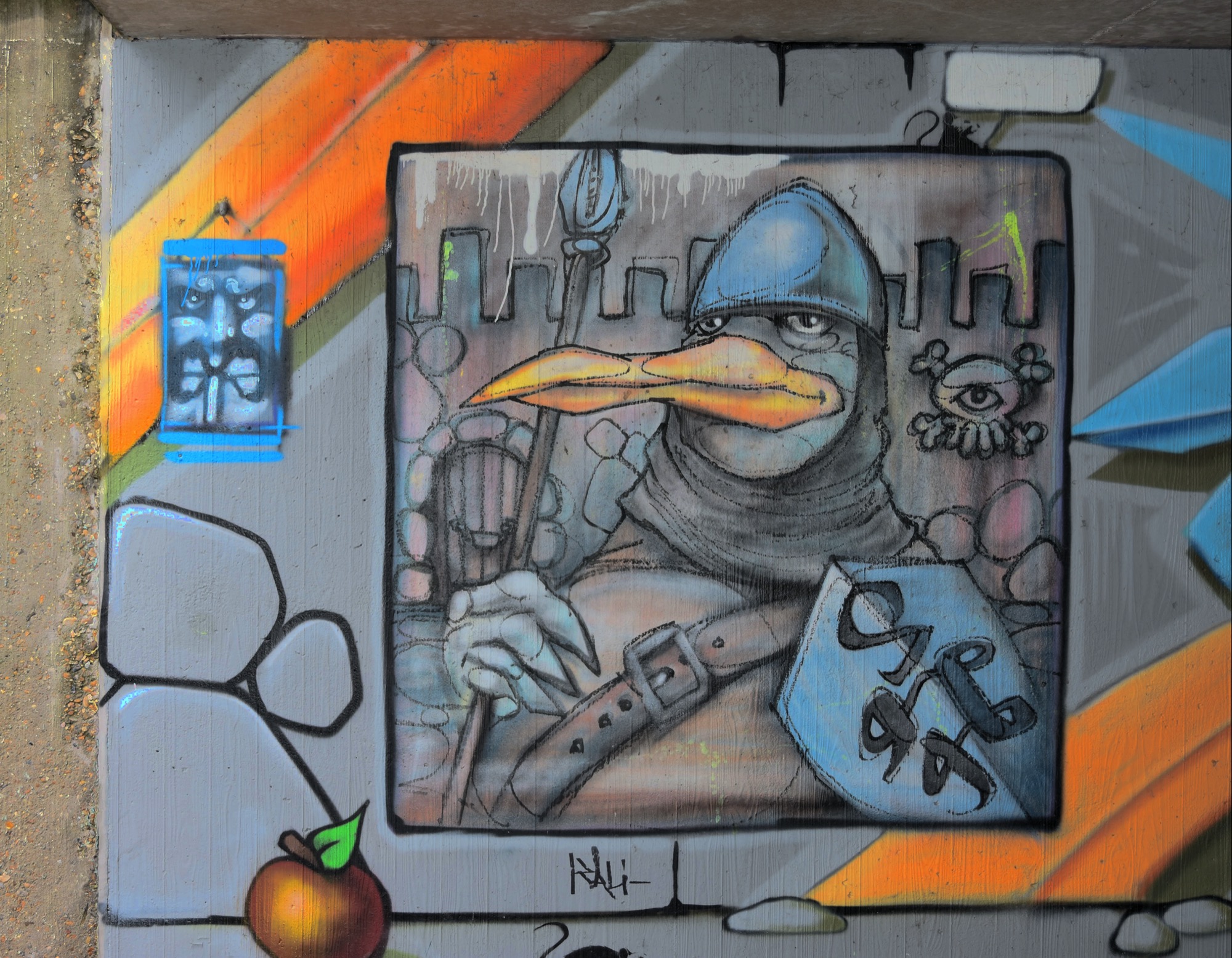 Graffiti 1174 figthing pingouin of in Brugge Belgium