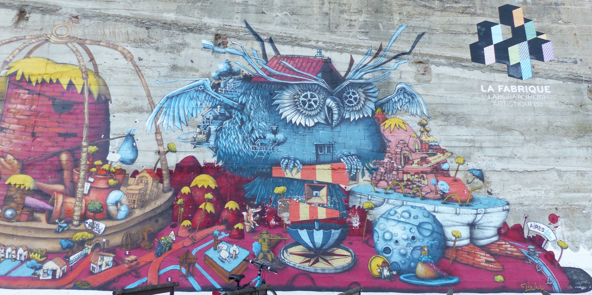 The artwork La Fabrique is of graffiti type. You can admire it in the city of Nantes in France and more precisely here : 8 Boulevard Léon Bureau, 44200 Nantes, France.