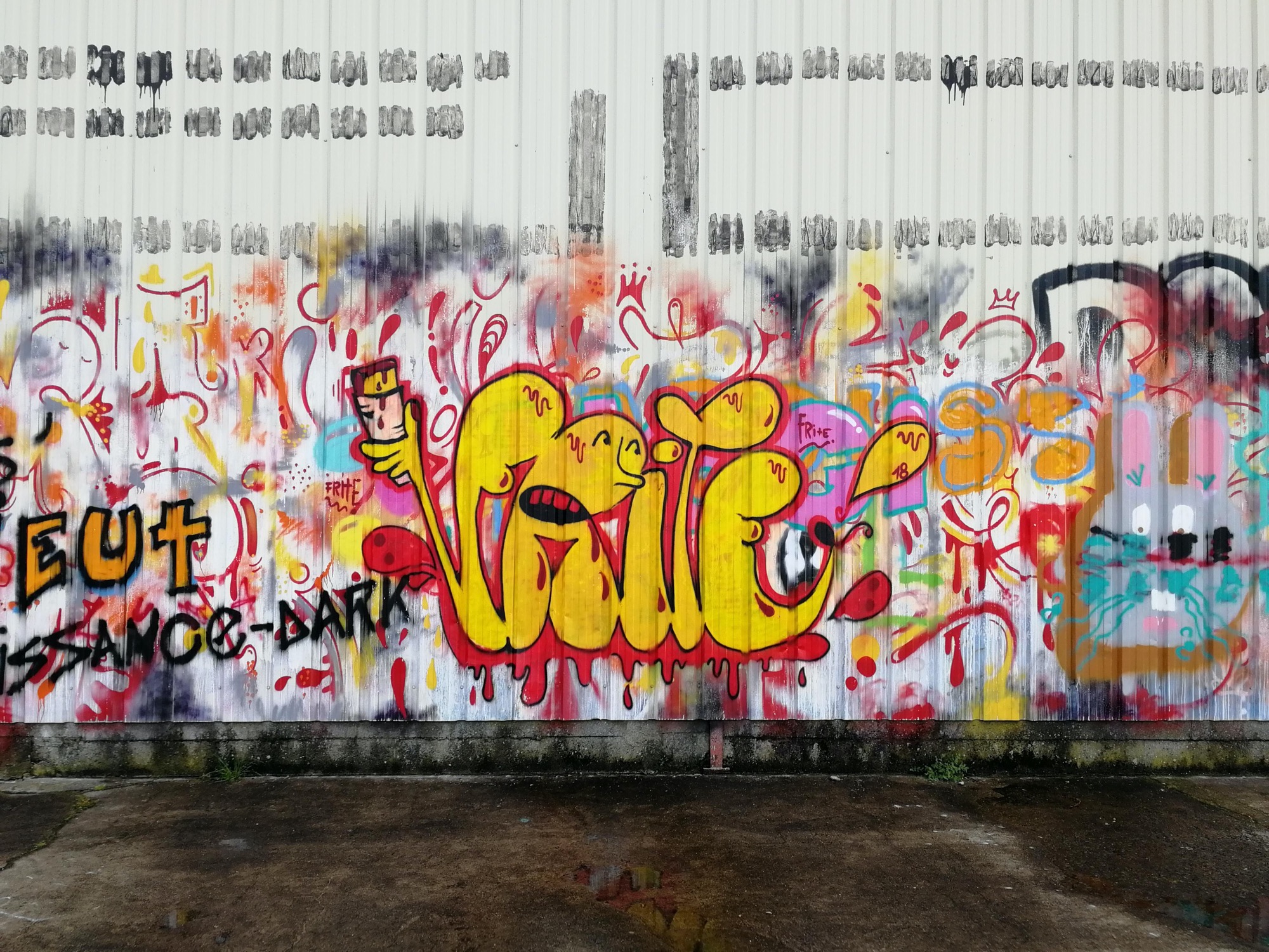 The artwork is of graffiti type. You can admire it in the city of Redon in France and more precisely here : 27 Rue de Vannes, 35600 Redon, France.