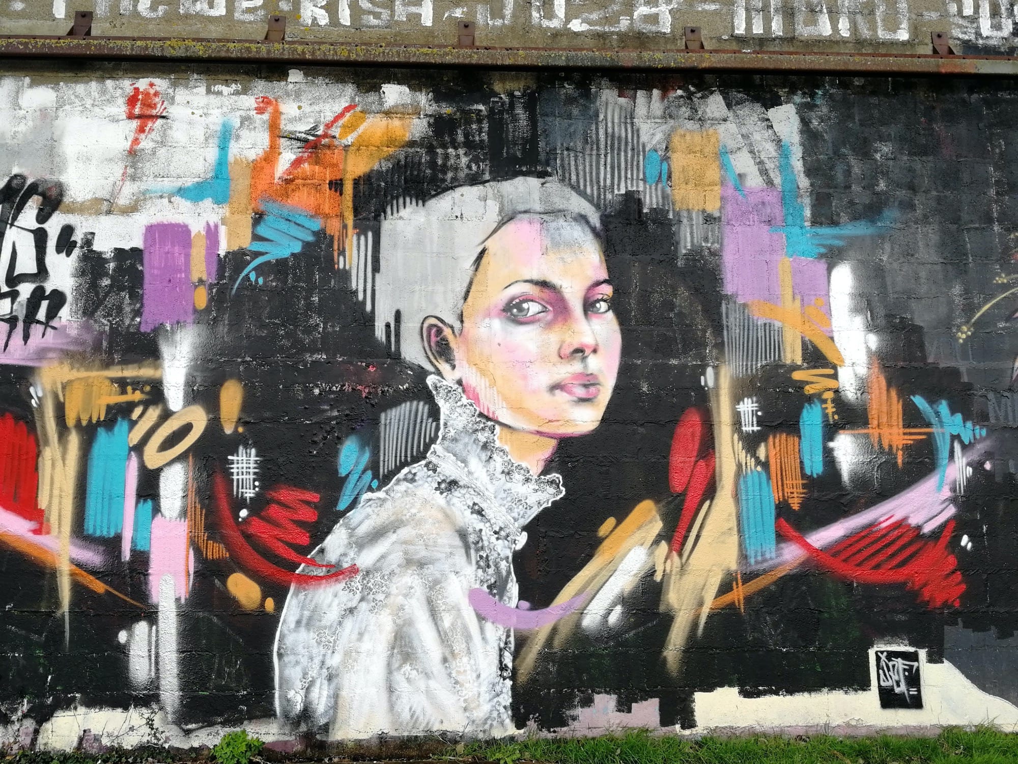 The artwork is of graffiti type. You can admire it in the city of Redon in France and more precisely here : 27 Rue de Vannes, 35600 Redon, France.