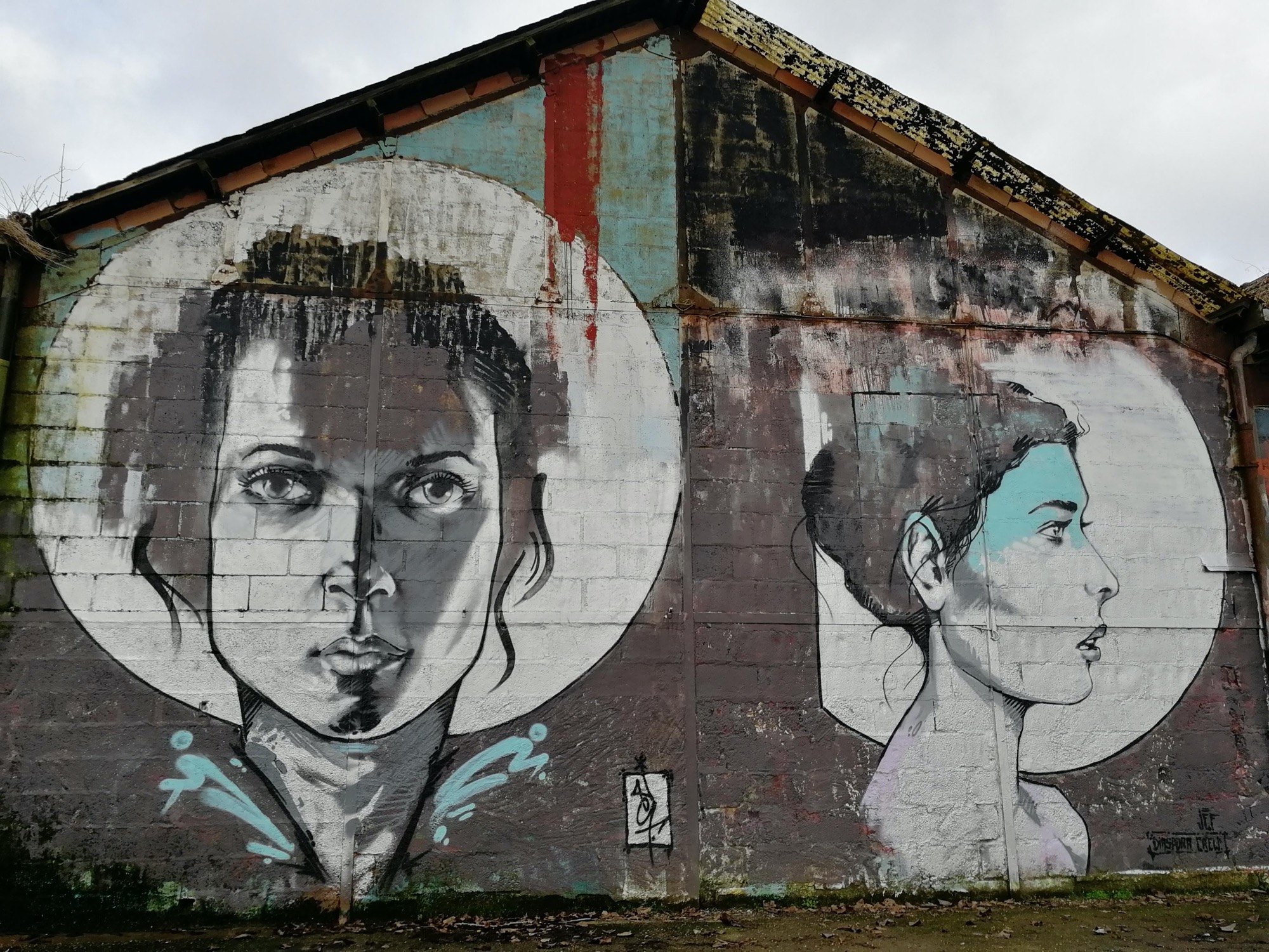 The artwork is of graffiti type. You can admire it in the city of Redon in France and more precisely here : 12 Quai Jean Bart, 35600 Redon, France.