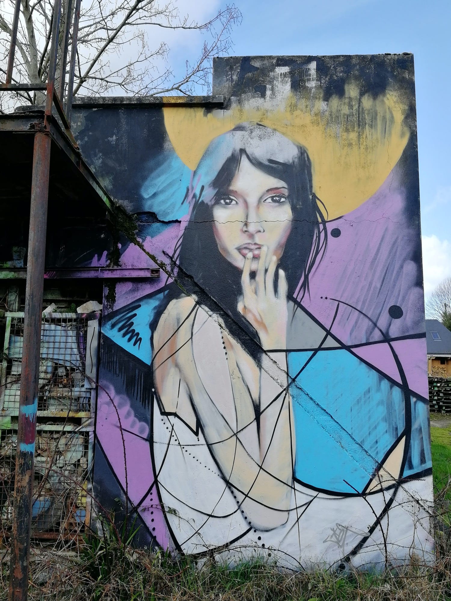 The artwork is of graffiti type. You can admire it in the city of Saint-Nicolas-de-Redon in France and more precisely here : 8 Rue des Chantiers, 44460 Saint-Nicolas-de-Redon, France.