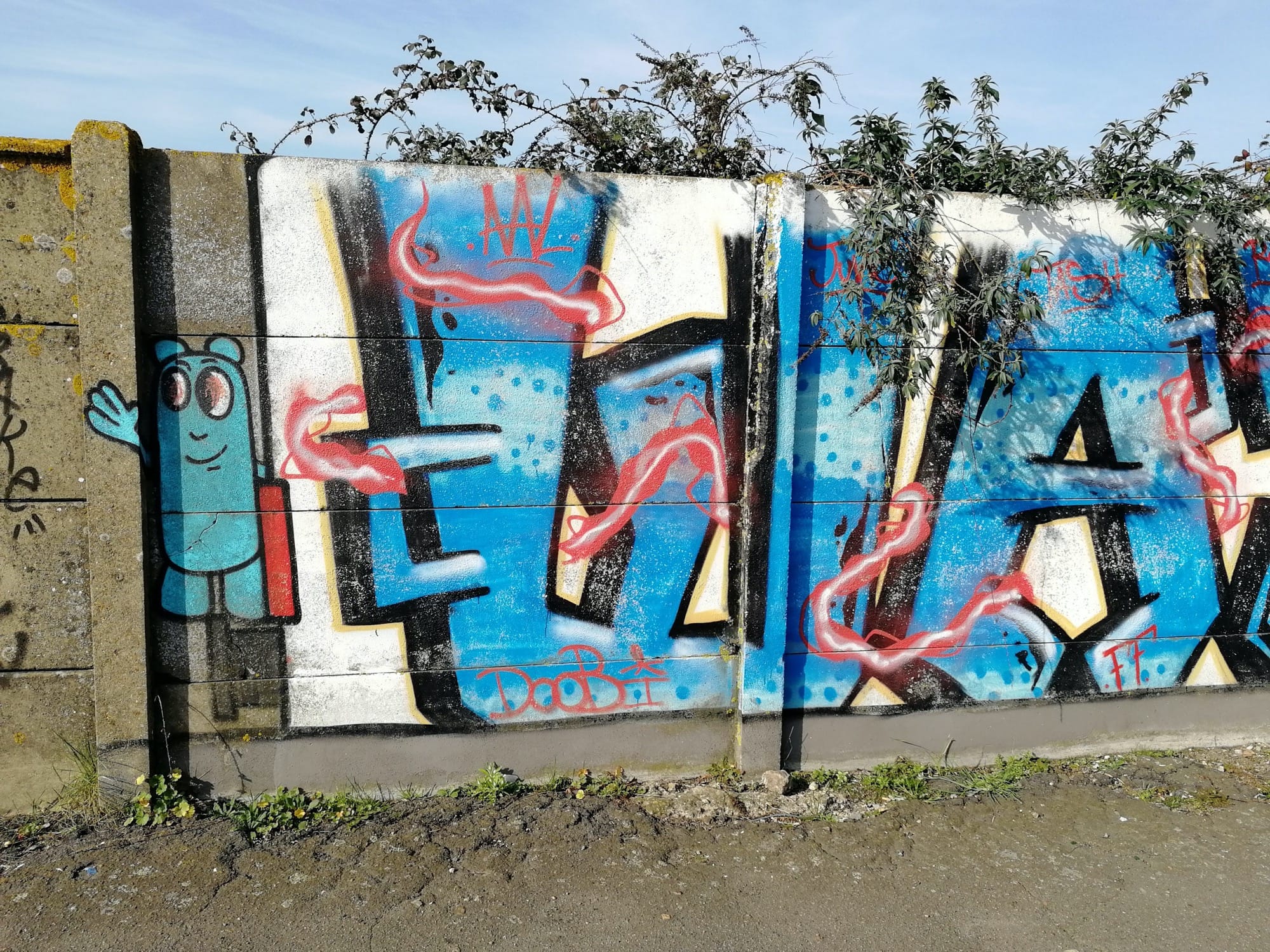 The artwork is of graffiti type. You can admire it in the city of Saint-Nazaire in France and more precisely here : Avenue de la Forme Ecluse, 44600 Saint-Nazaire, France.