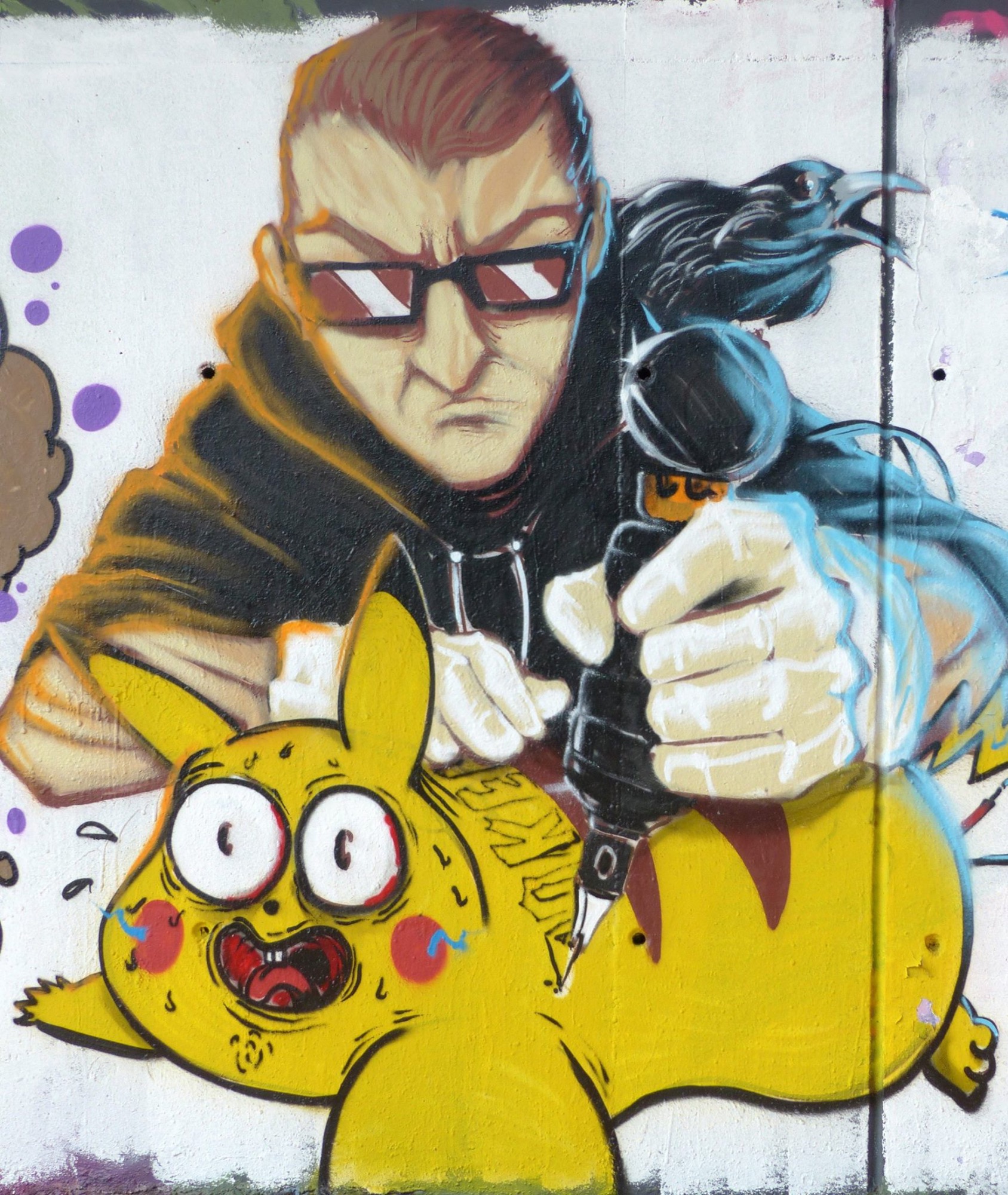 The artwork is of graffiti type. You can admire it in the city of Olivet in France and more precisely here : Avenue de Sologne, 45160 Olivet, France.