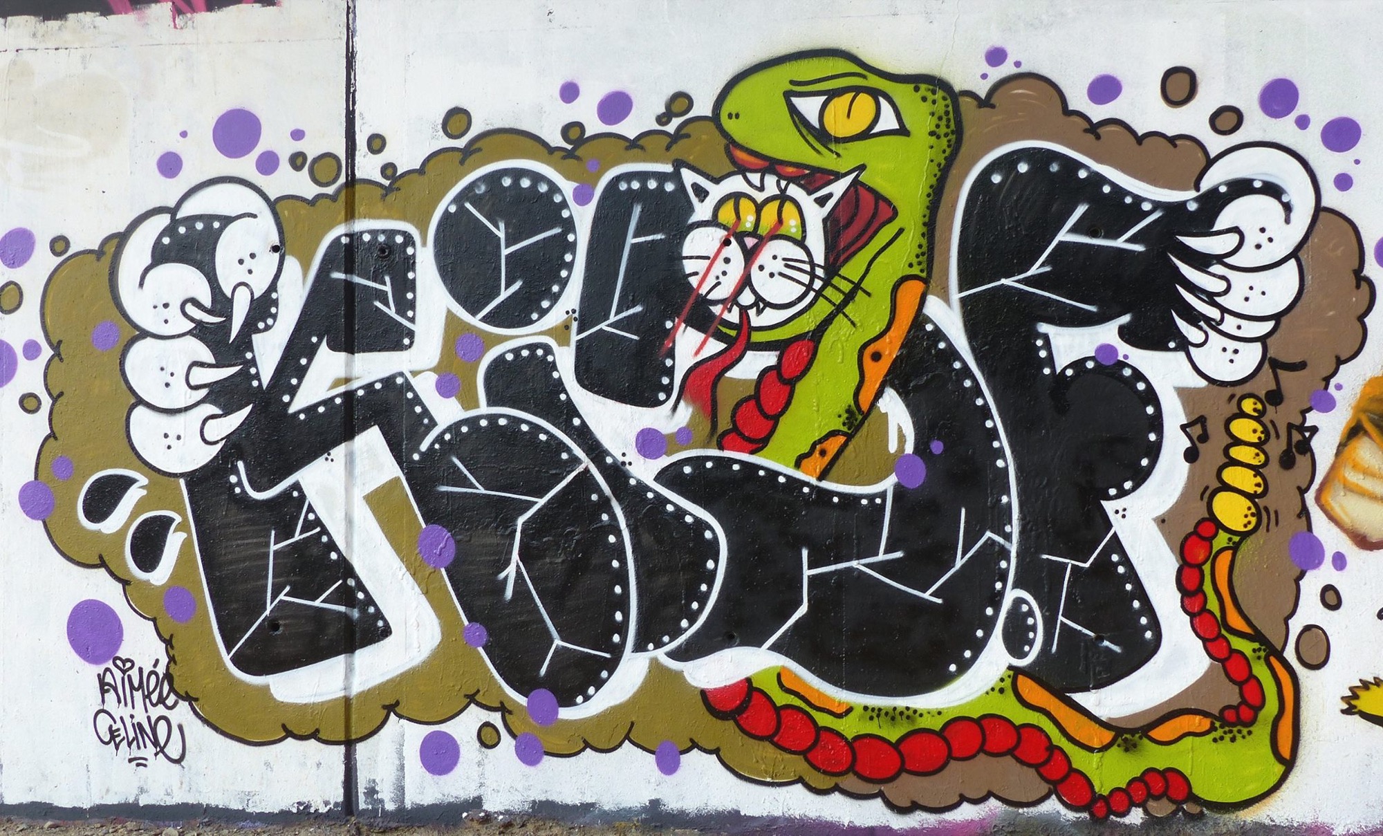 The artwork is of graffiti type. You can admire it in the city of Olivet in France and more precisely here : Avenue de Sologne, 45160 Olivet, France.