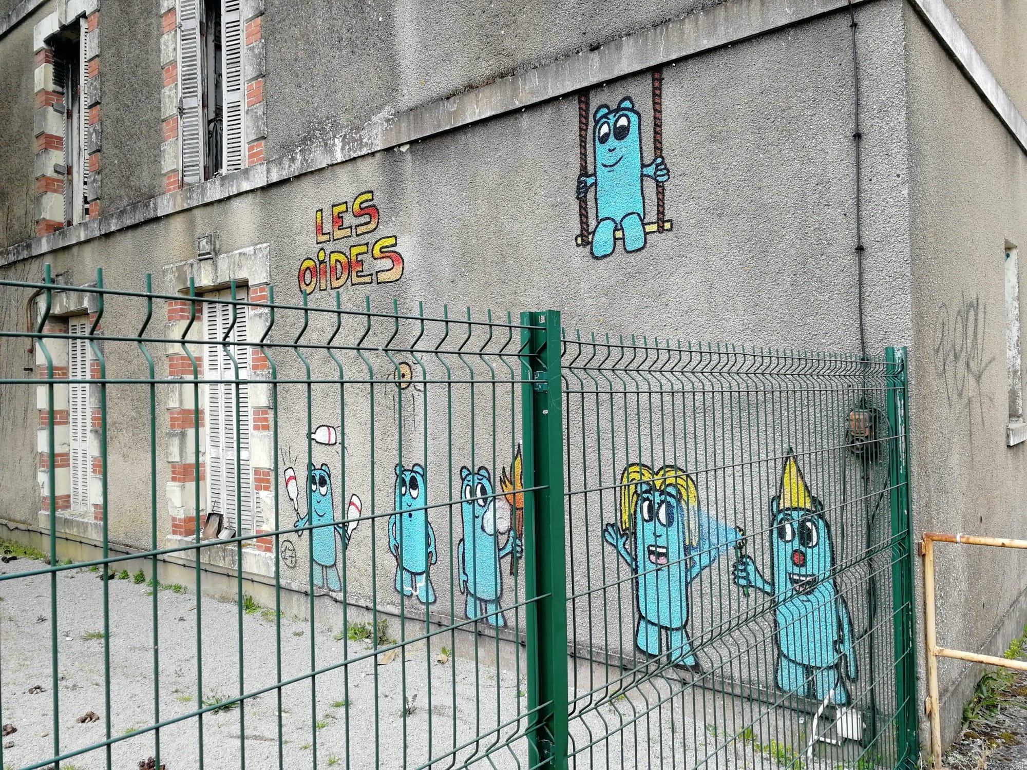 The artwork Les oides is of graffiti type. You can admire it in the city of Issé in France and more precisely here : 14 Rue de l'Industrie, 44520 Issé, France.