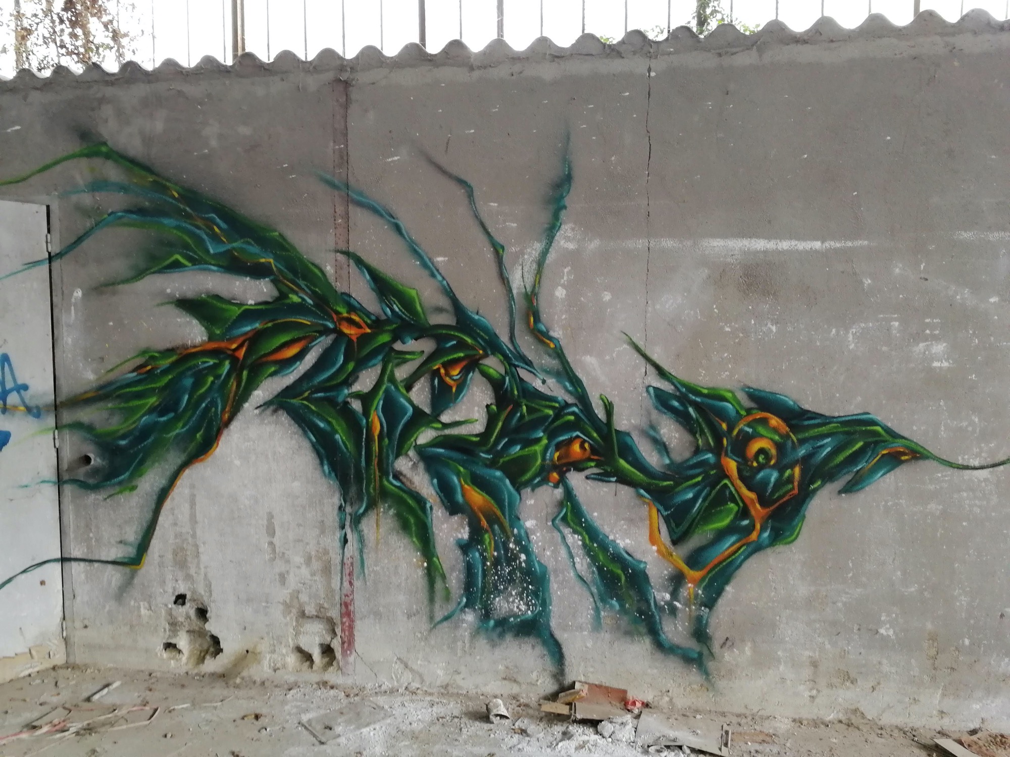 The artwork is of graffiti type. You can admire it in the city of Issé in France and more precisely here : 1 Rue de l'Industrie, 44520 Issé, France.