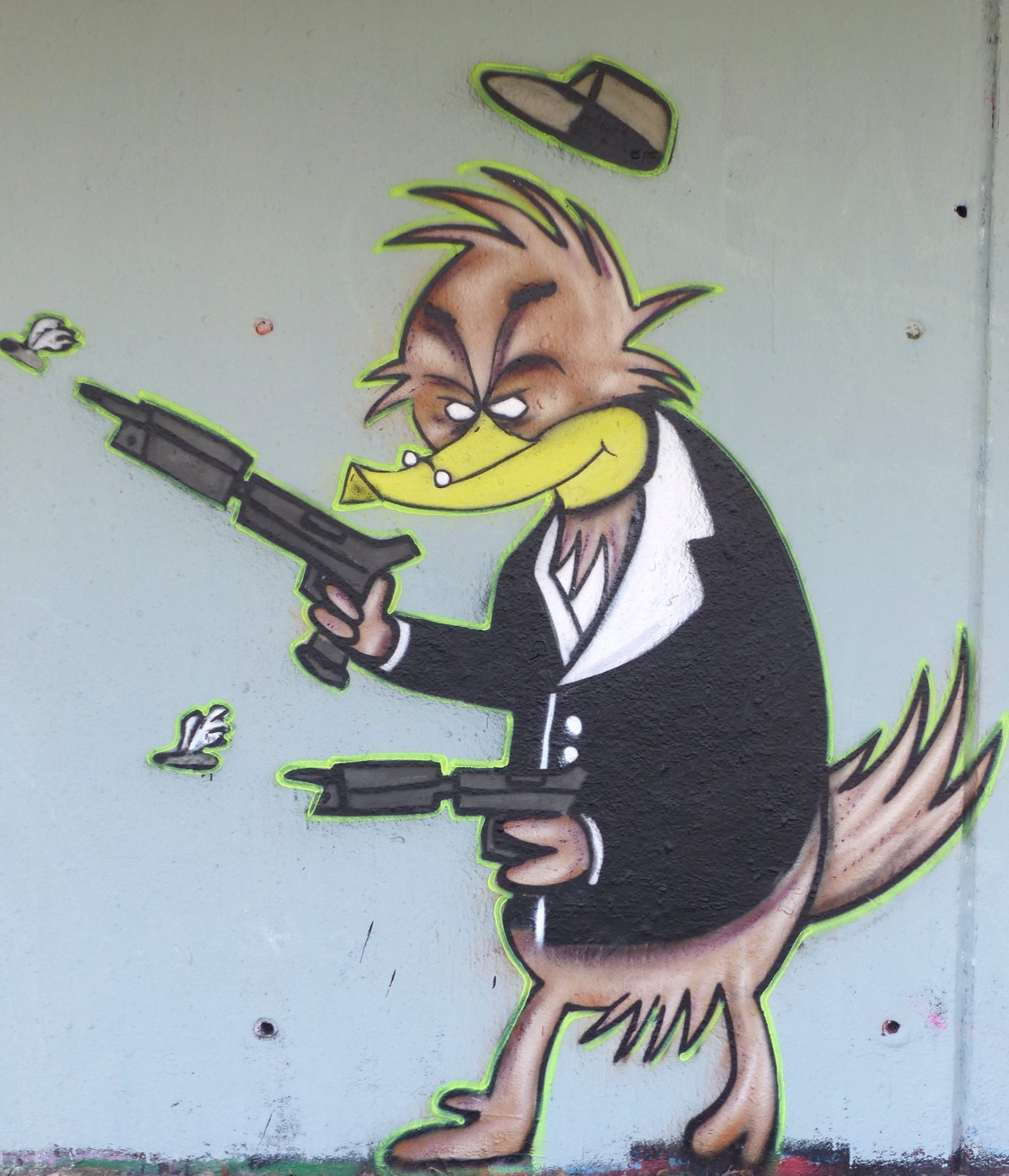 The artwork is of graffiti type. You can admire it in the city of Olivet in France and more precisely here : Avenue de Sologne, 45160 Olivet, France.