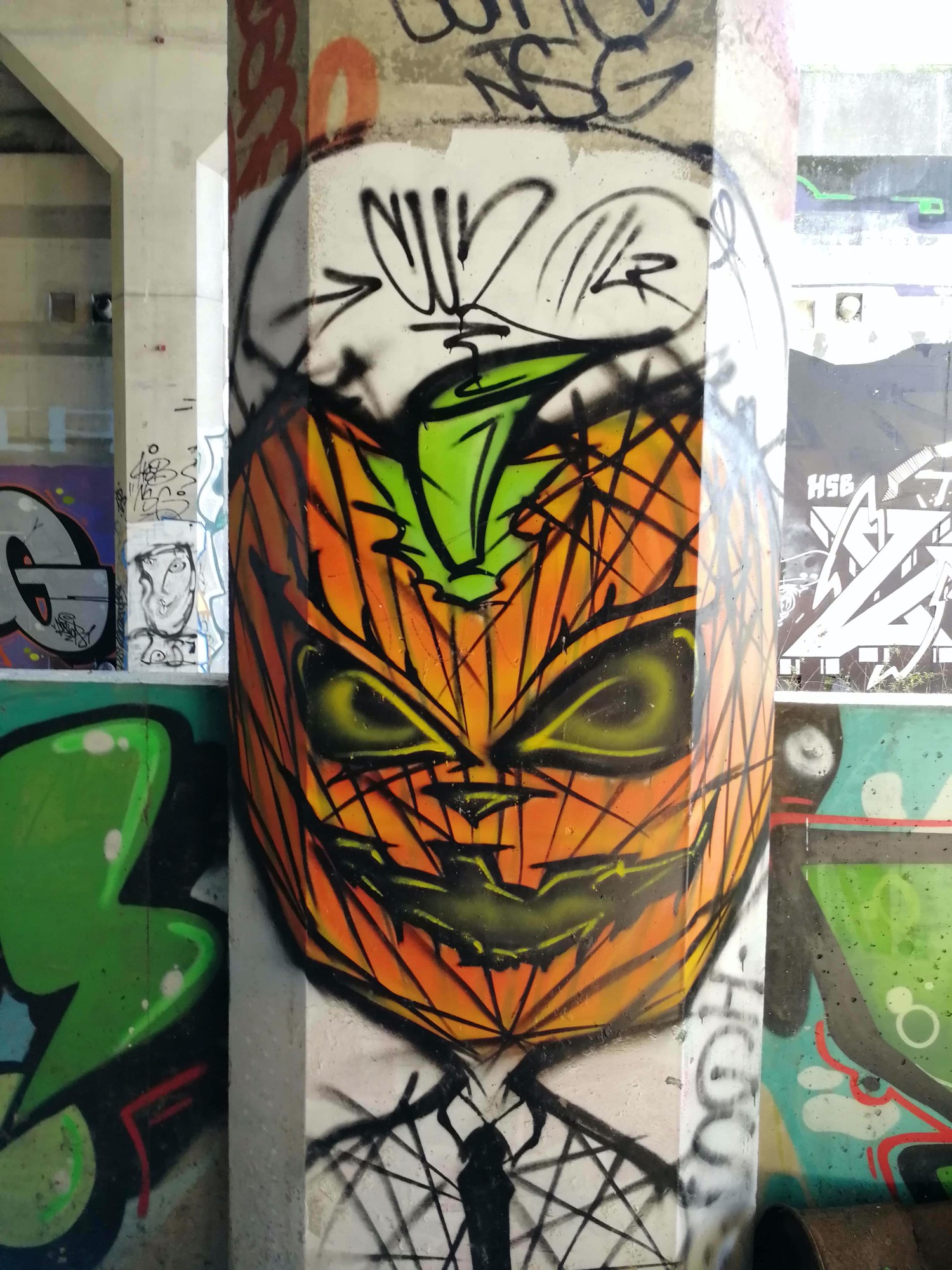 The artwork is of graffiti type. You can admire it in the city of Angers in France and more precisely here : 2 Prom. de Reculée, 49100 Angers, France.