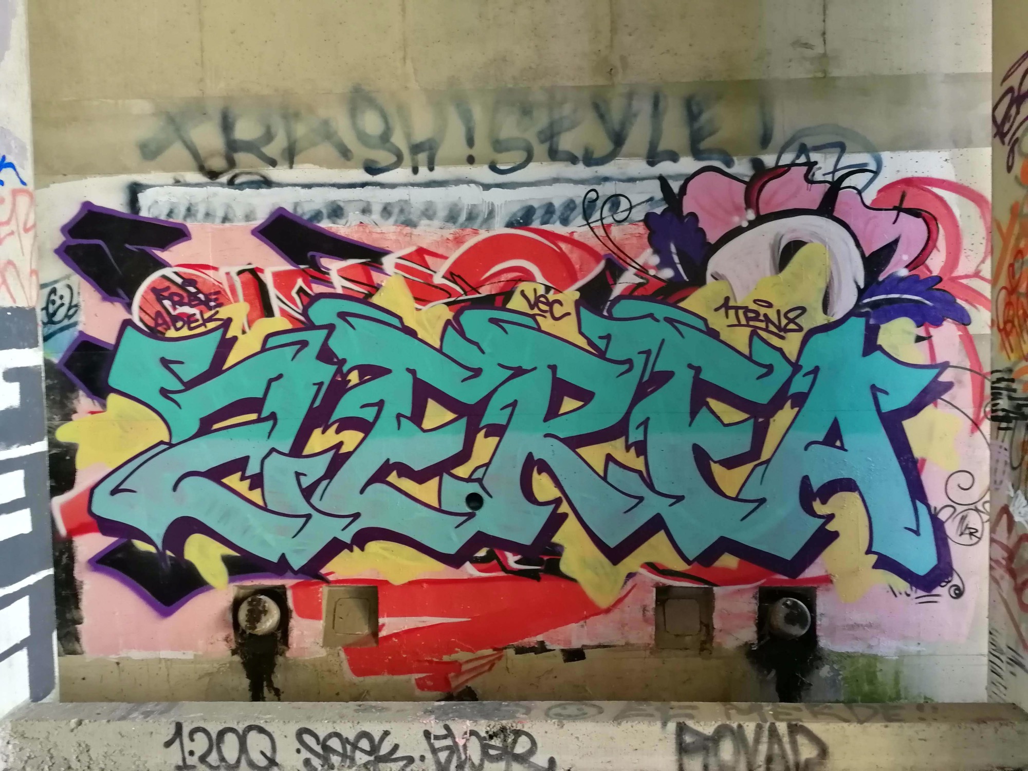 The artwork is of graffiti type. You can admire it in the city of Angers in France and more precisely here : 2 Prom. de Reculée, 49100 Angers, France.