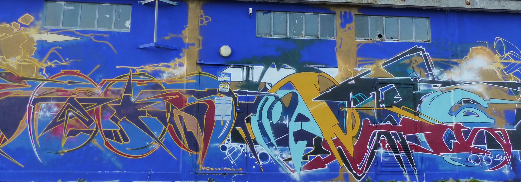 The artwork is of graffiti type. You can admire it in the city of Nantes in France and more precisely here : 62 Quai Président Wilson, 44200 Nantes, France.