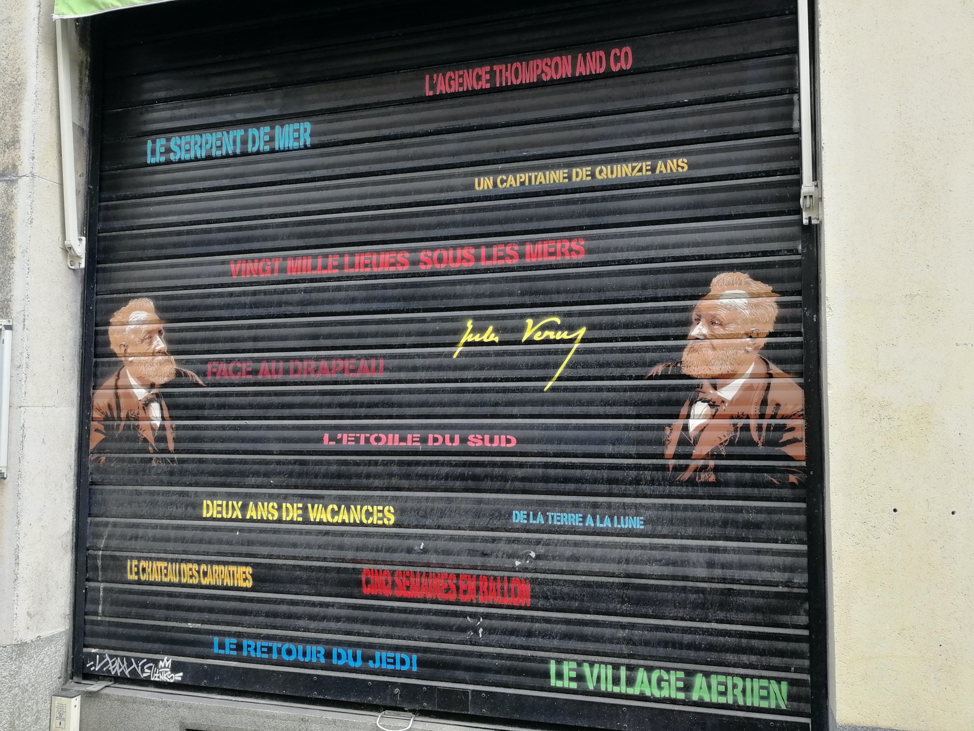 The artwork is of graffiti type. You can admire it in the city of Nantes in France and more precisely here : 1 Rue de la Galissonnière, 44000 Nantes, France.