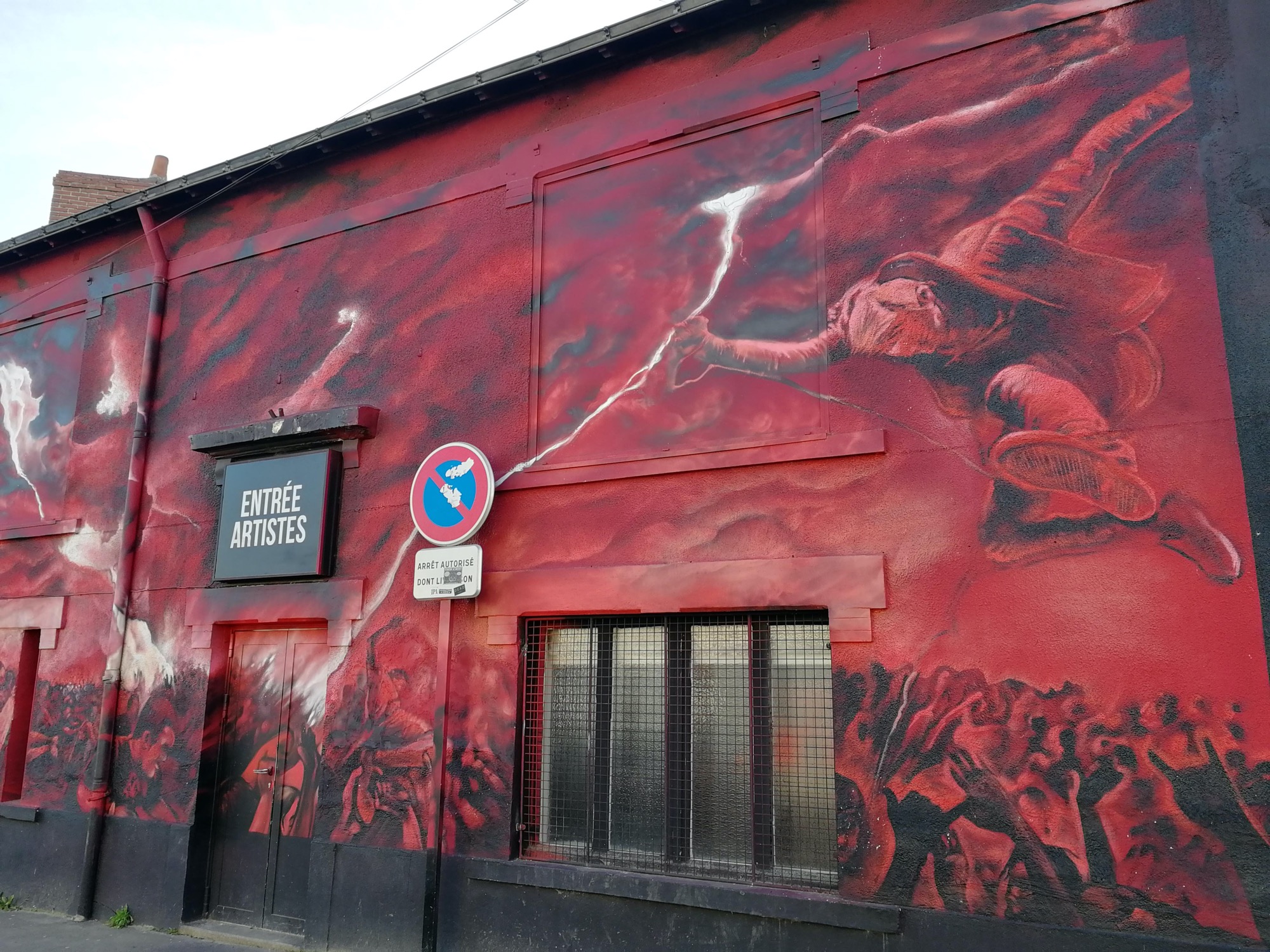 The artwork La scène Michelet is of graffiti type. You can admire it in the city of Nantes in France and more precisely here : 2 Boulevard Henry Orrion, 44300 Nantes, France.