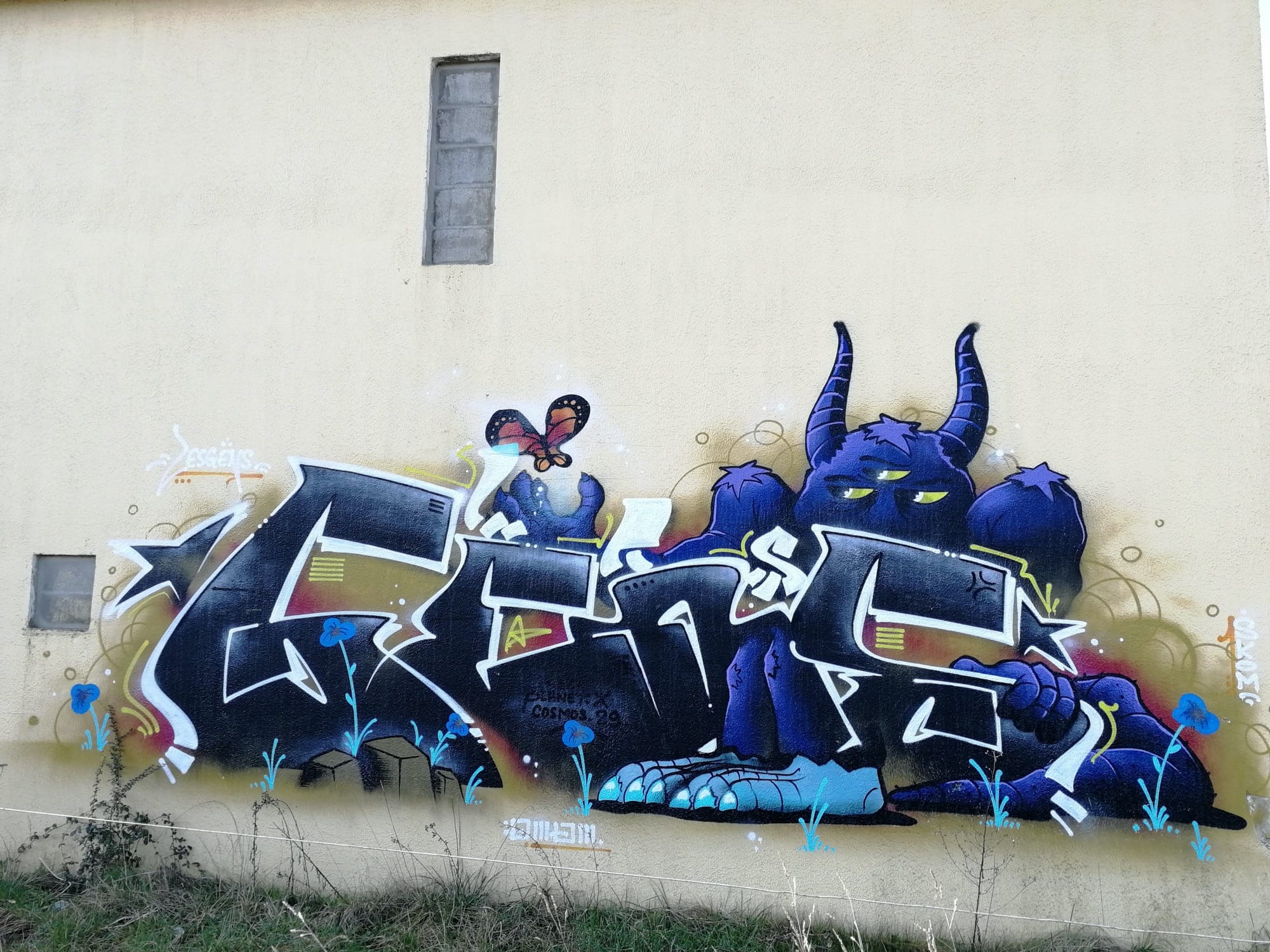 The artwork is of graffiti type. You can admire it in the city of Montoir-de-Bretagne in France and more precisely here : 99 Rue Henri Gautier, 44550 Montoir-de-Bretagne, France.