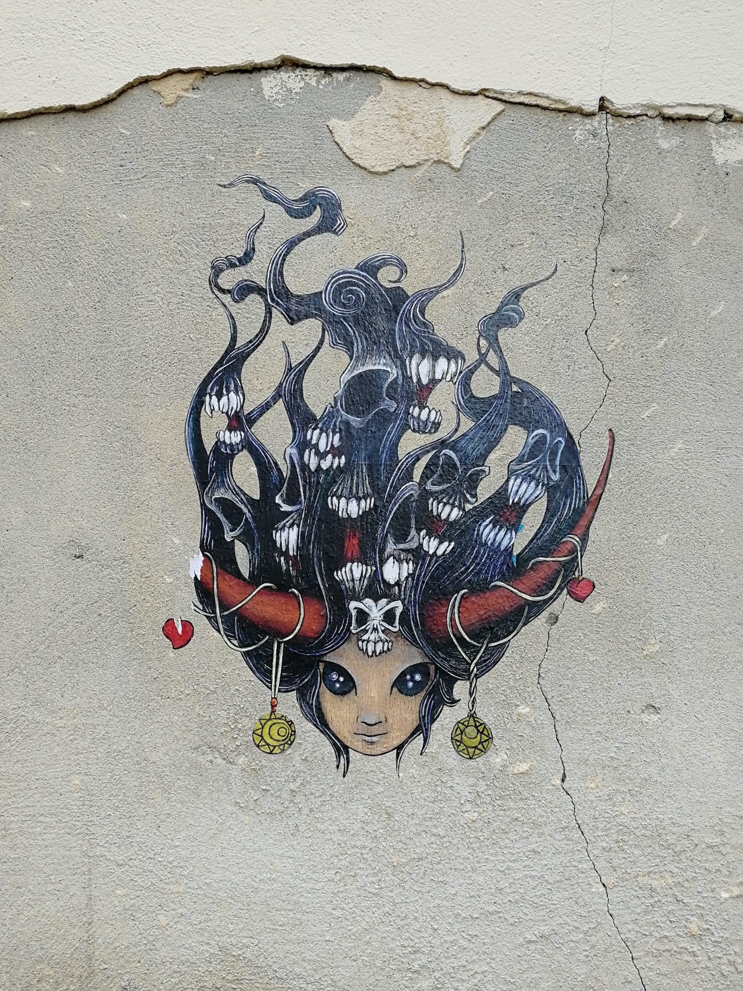 The artwork is of sticking type. You can admire it in the city of Lyon in France and more precisely here : 44 Rue de Cuire, 69004 Lyon, France.