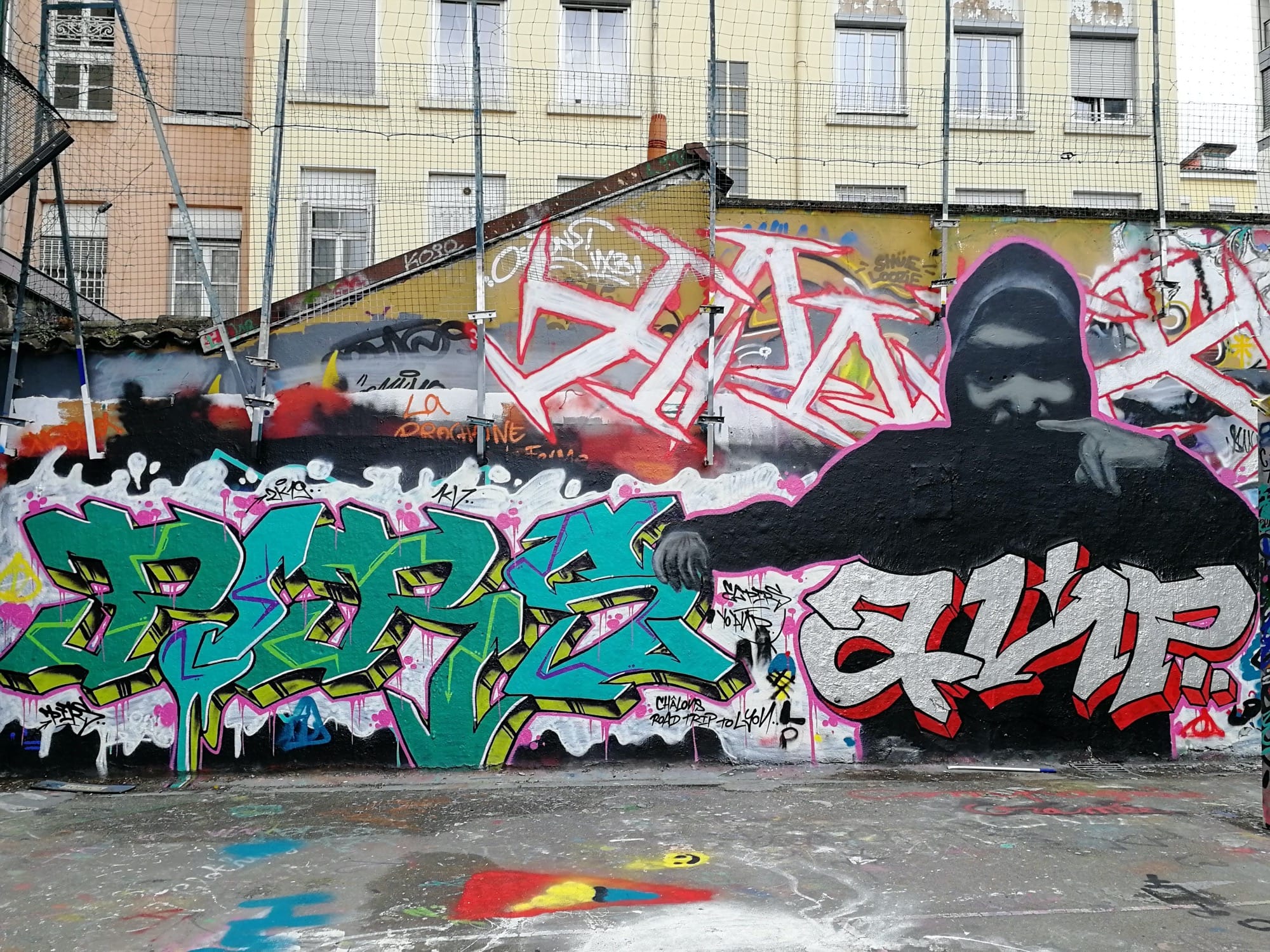 The artwork is of graffiti type. You can admire it in the city of Lyon in France and more precisely here : 27 Rue du Chariot d'Or, 69004 Lyon, France.
