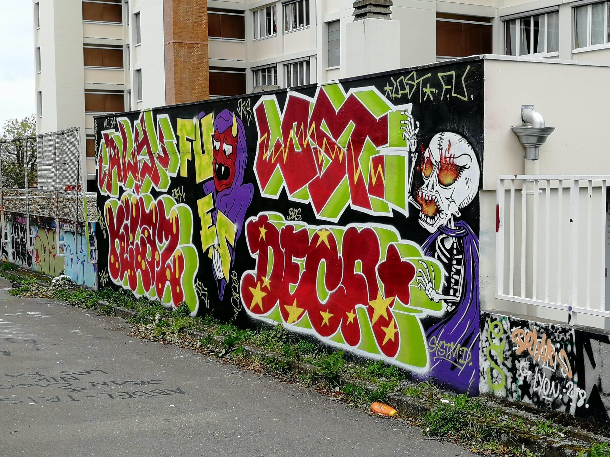 The artwork is of graffiti type. You can admire it in the city of Lyon in France and more precisely here : 38 Rue d'Ivry, 69004 Lyon, France.