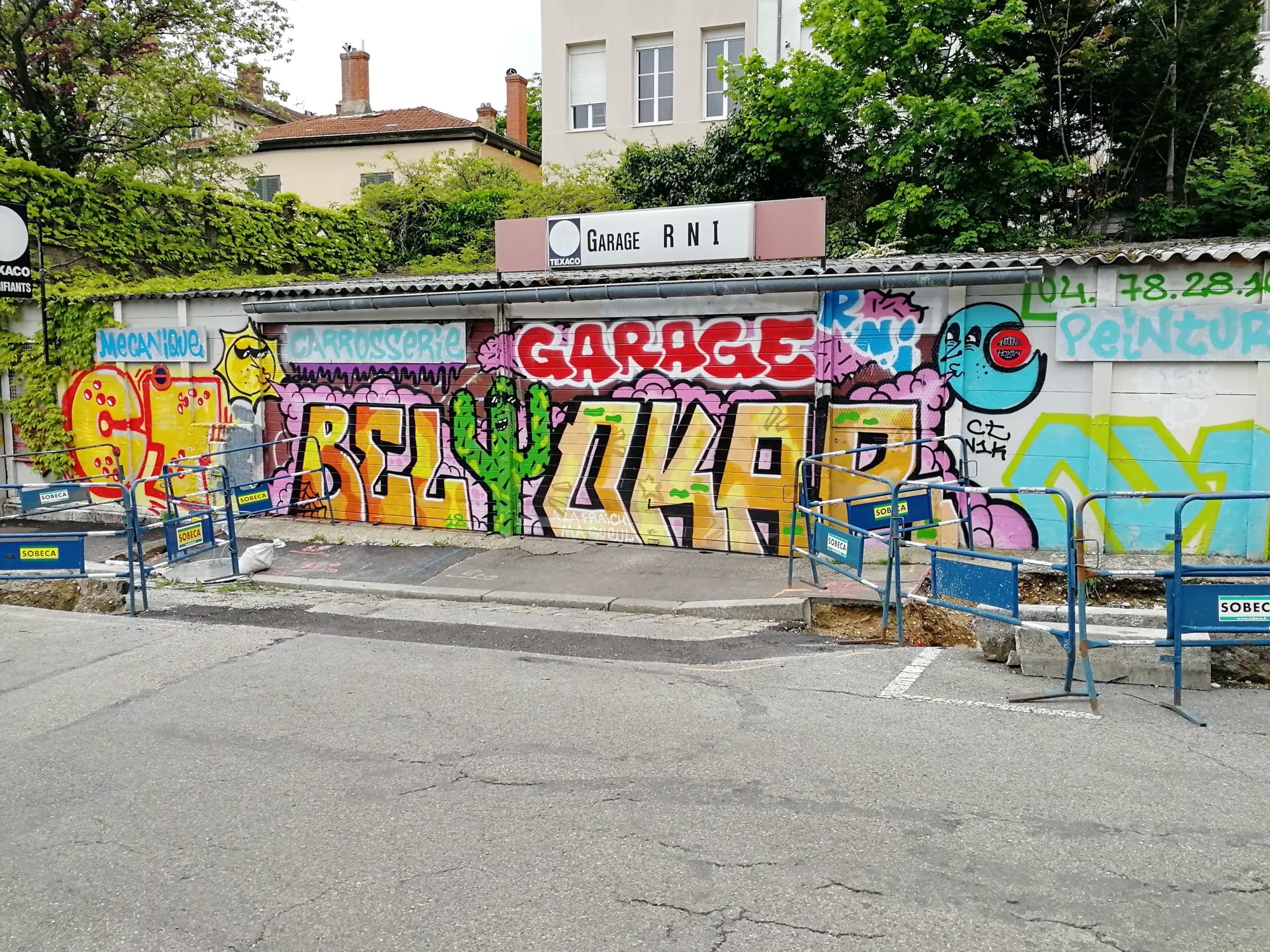 The artwork is of graffiti type. You can admire it in the city of Lyon in France and more precisely here : 1 Rue Louis Thévenet, 69004 Lyon, France.
