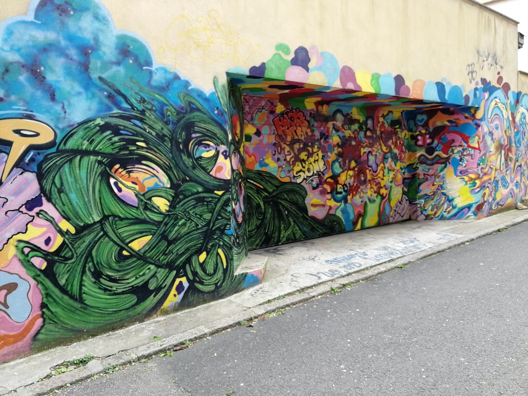 The artwork is of graffiti type. You can admire it in the city of Lyon in France and more precisely here : 26 Rue Joséphin Soulary, 69004 Lyon, France.