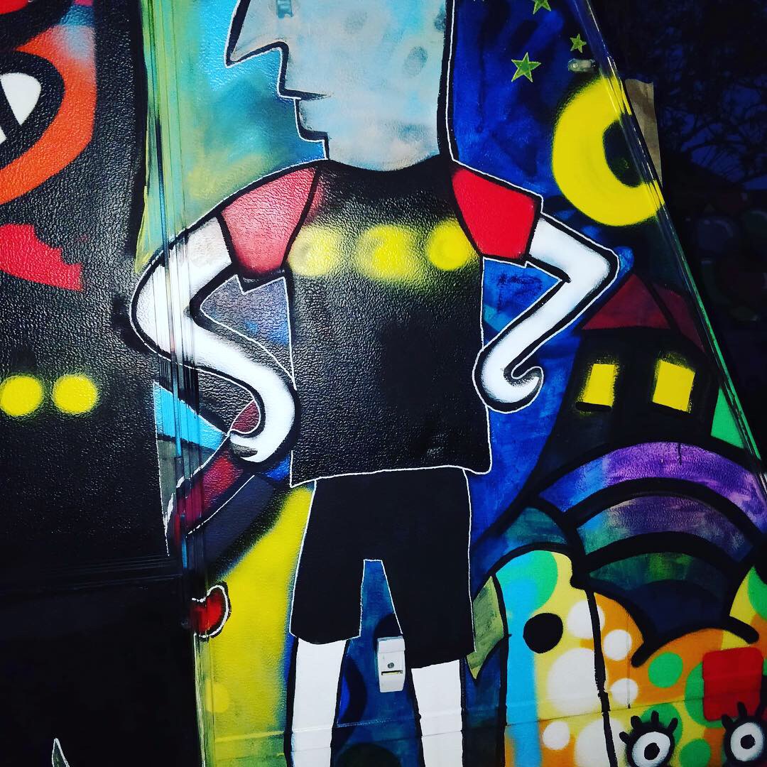 The artwork Clubhouse of the bycycle team is of graffiti type. You can admire it in the city of København in Danmark and more precisely here : Fabriksområdet 99A, 1440 København, Danmark.