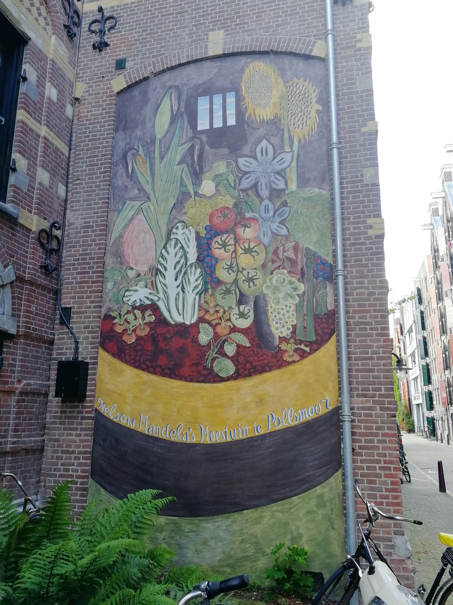 The artwork is of graffiti type. You can admire it in the city of Amsterdam in Netherlands and more precisely here : Prinseneiland 52, 1013 LR Amsterdam, Pays-Bas.