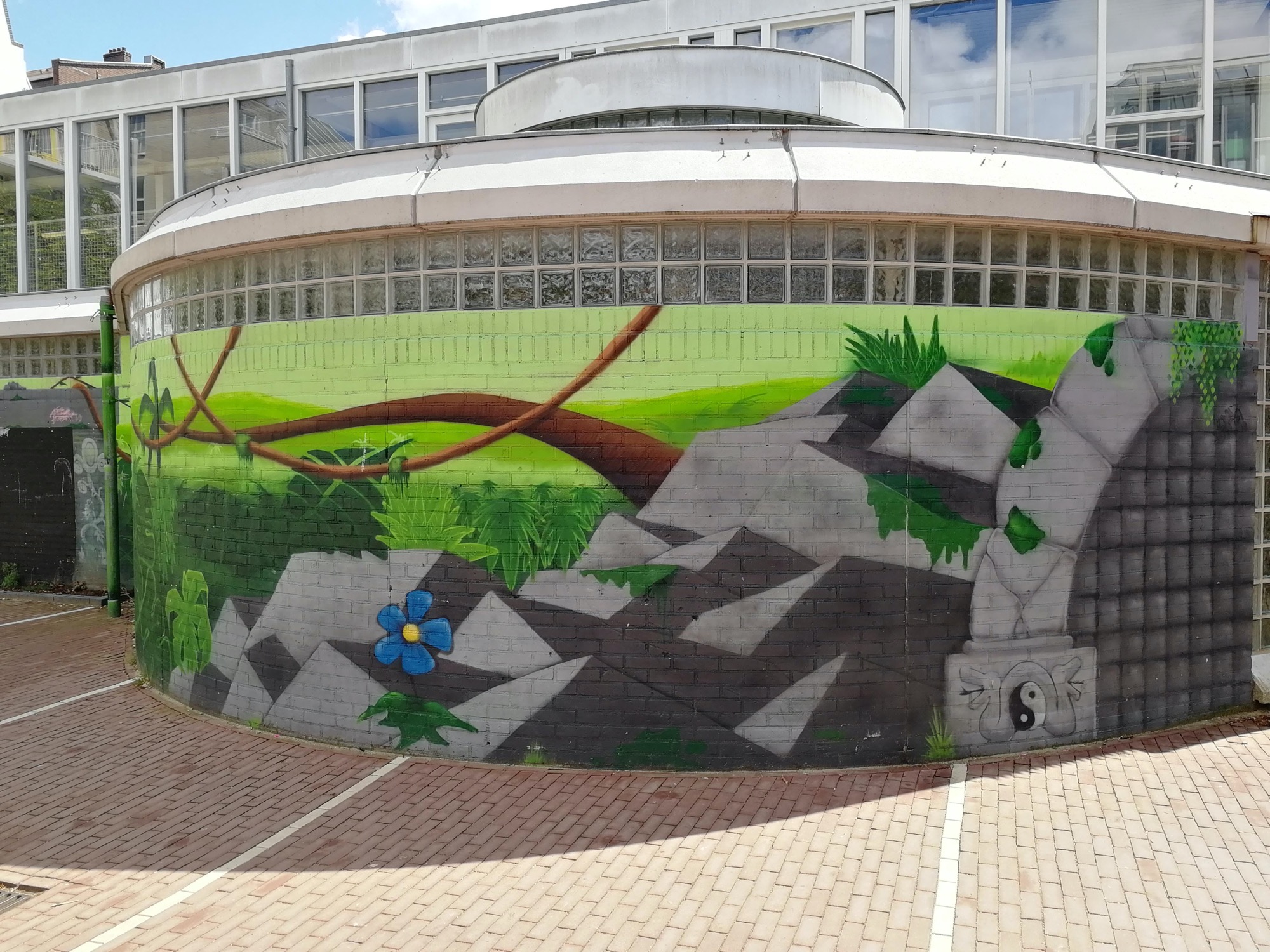 The artwork is of graffiti type. You can admire it in the city of Amsterdam in Netherlands and more precisely here : Lastageweg 16, 1011 DB Amsterdam, Pays-Bas.