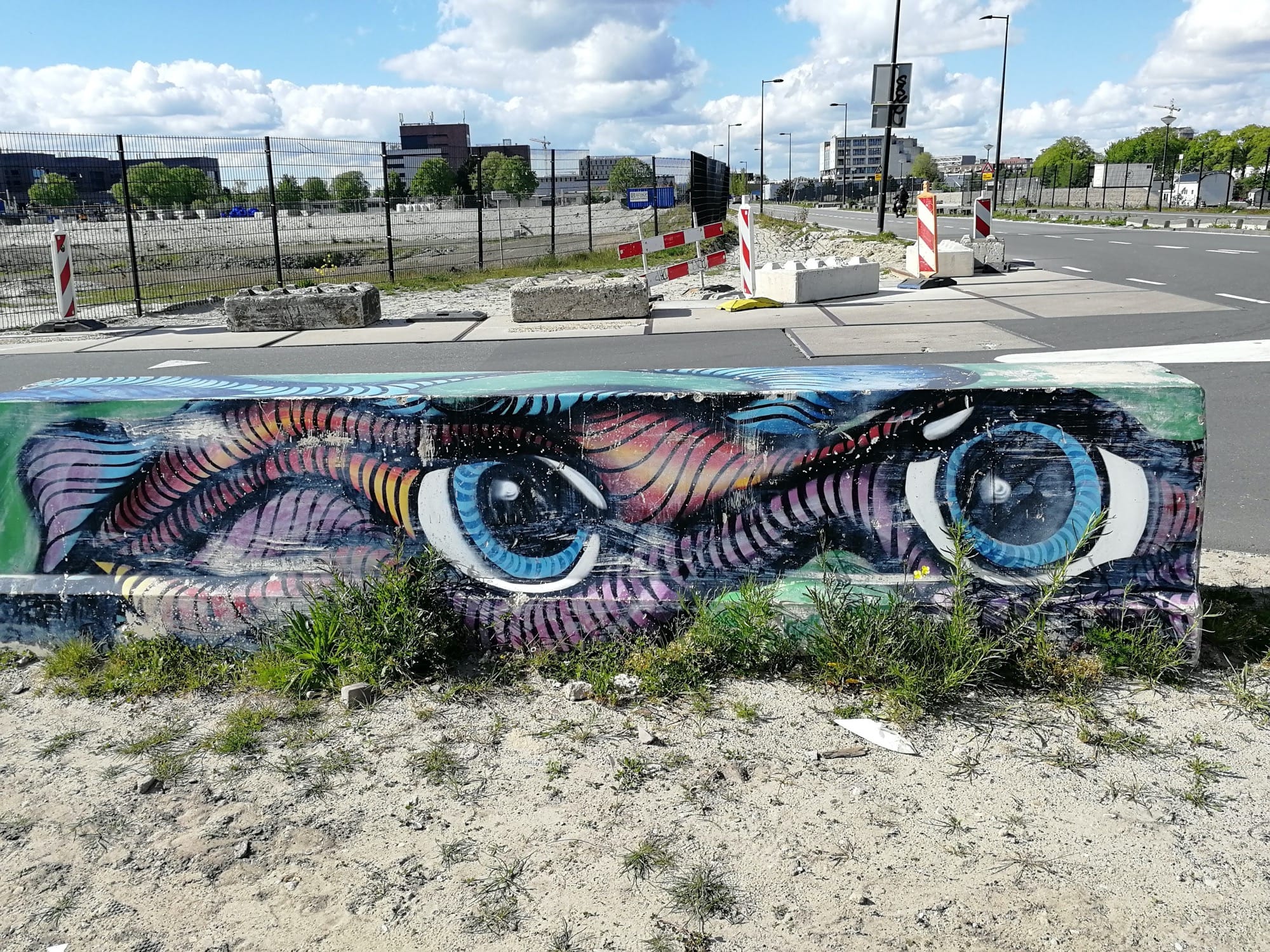 The artwork is of graffiti type. You can admire it in the city of Amsterdam in Netherlands and more precisely here : Ranonkelkade 3I, 1031 XR Amsterdam, Pays-Bas.