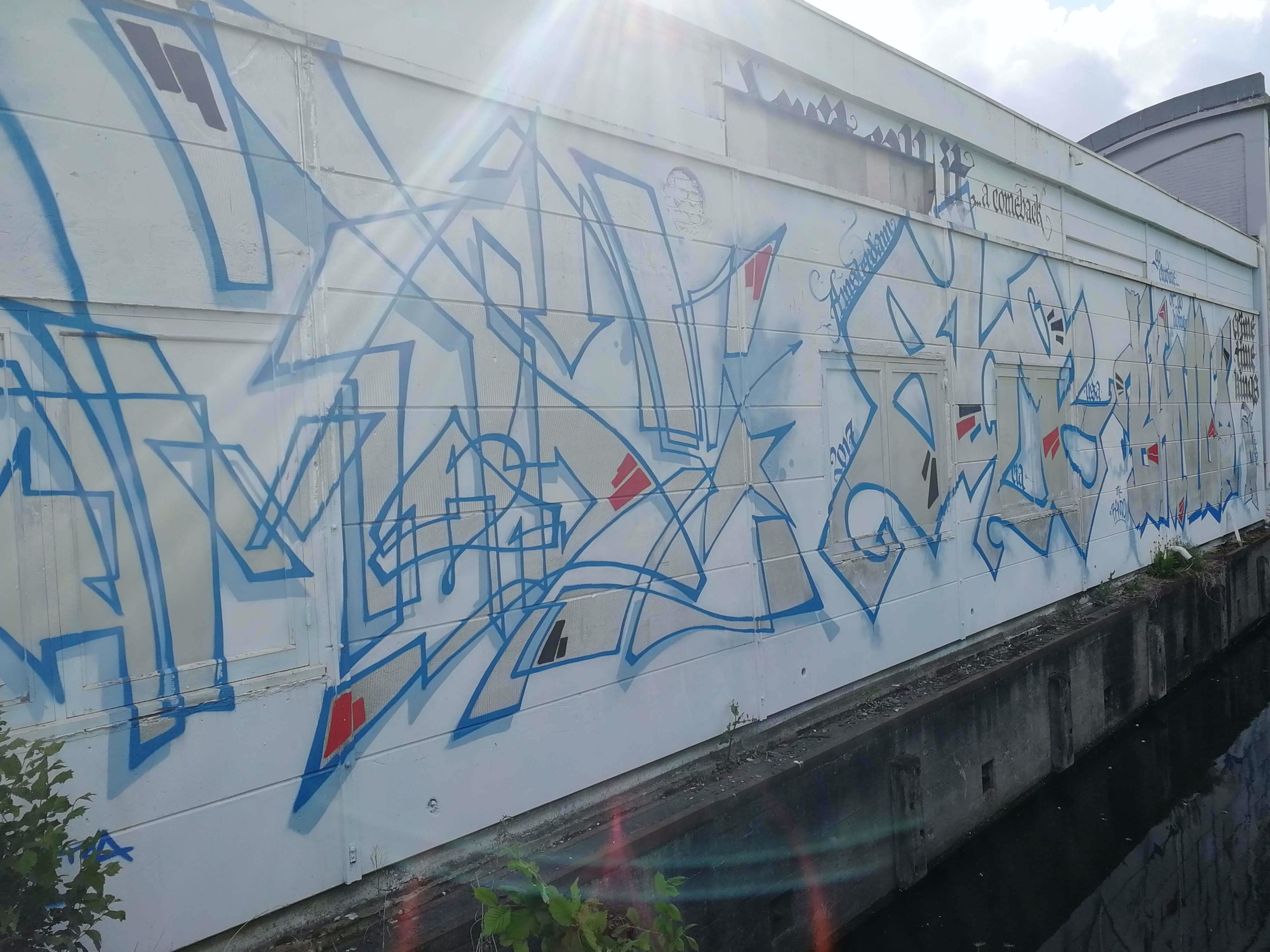 The artwork is of graffiti type. You can admire it in the city of Amsterdam in Netherlands and more precisely here : Bosrankstraat 1, 1032 KE Amsterdam, Pays-Bas.