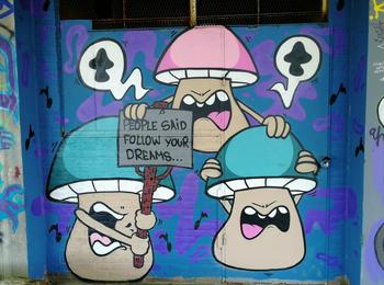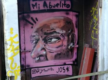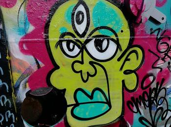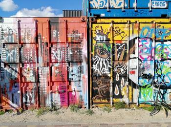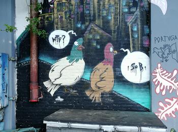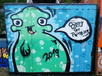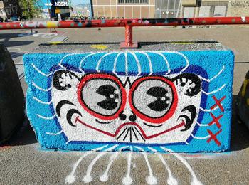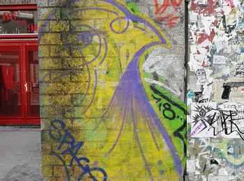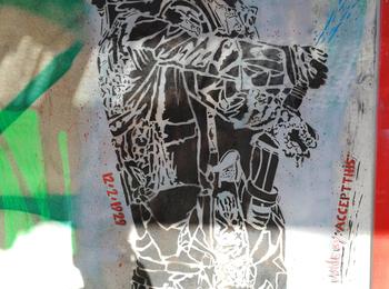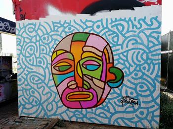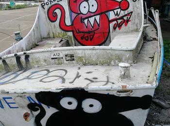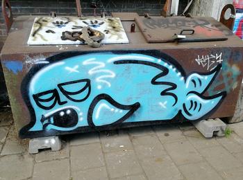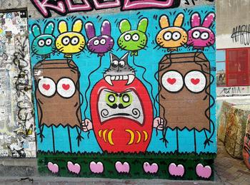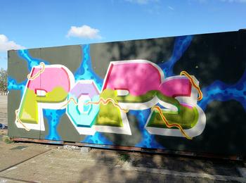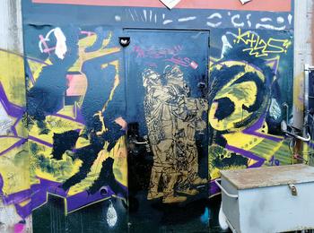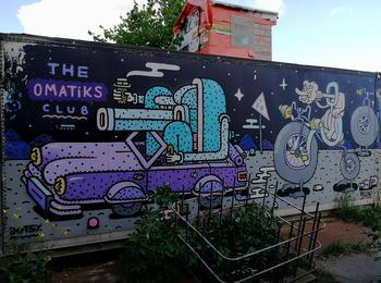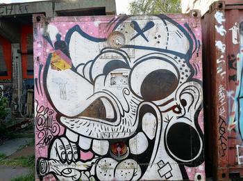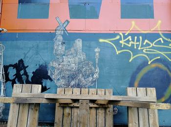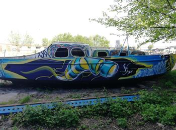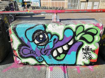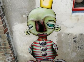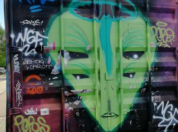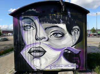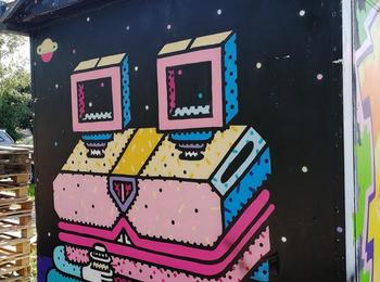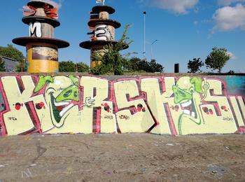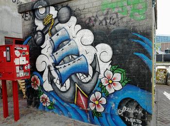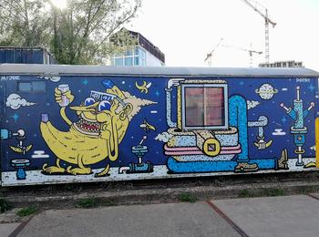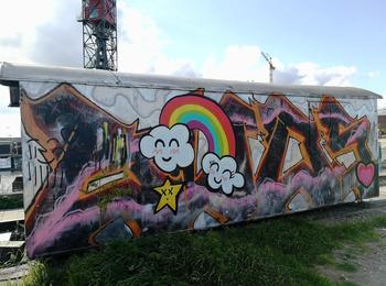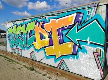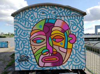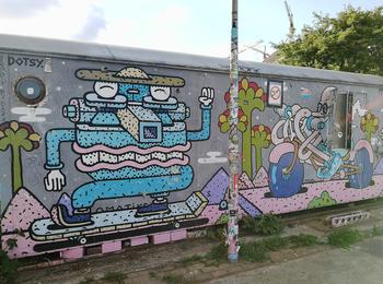 The artwork is of graffiti type. You can admire it in the city of Amsterdam in Netherlands and more precisely here : NDSM-Plein 86a, 1033 WB Amsterdam, Pays-Bas.