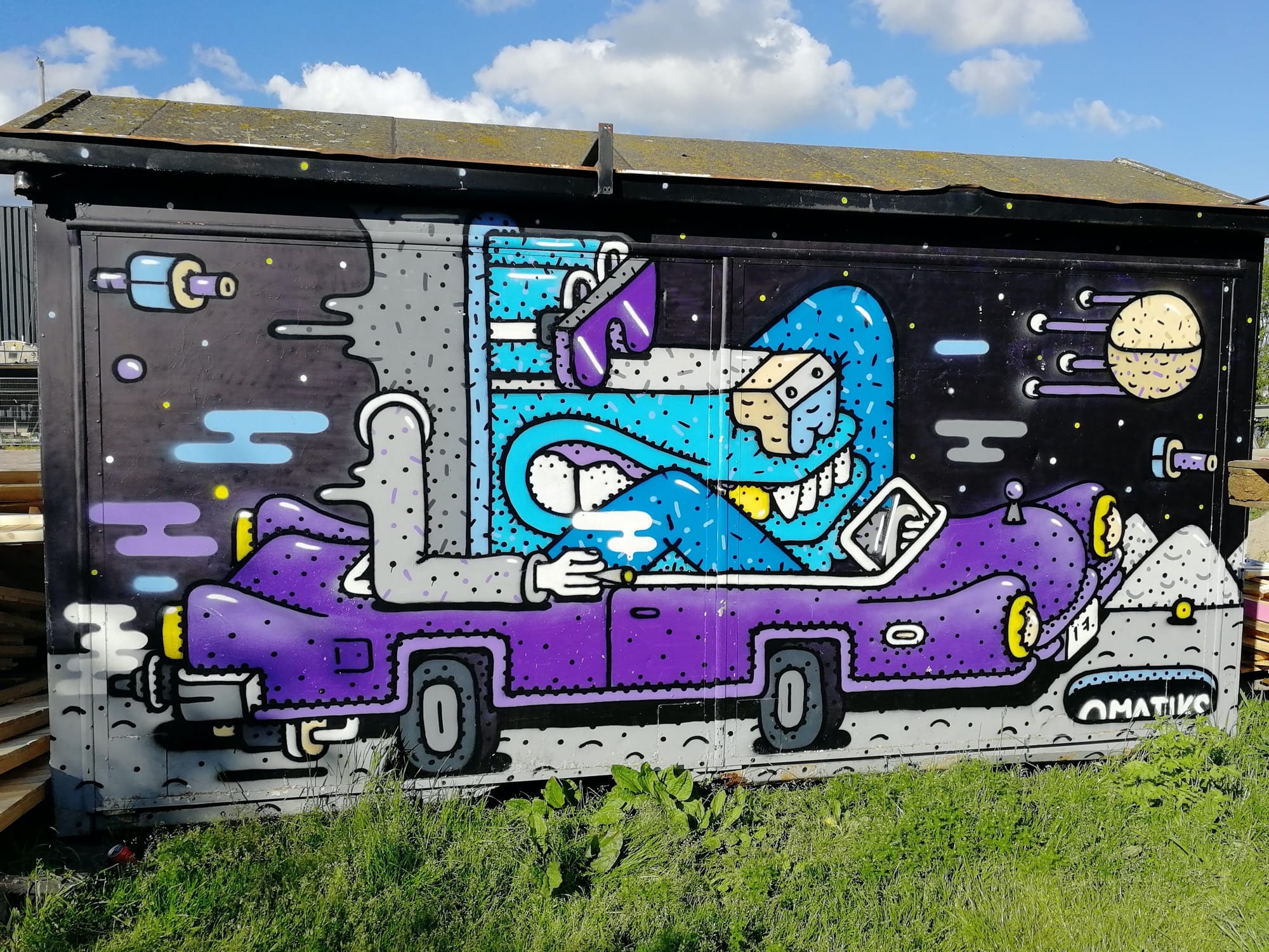The artwork is of graffiti type. You can admire it in the city of Amsterdam in Netherlands and more precisely here : NDSM-Plein 102, 1033 WB Amsterdam, Pays-Bas.