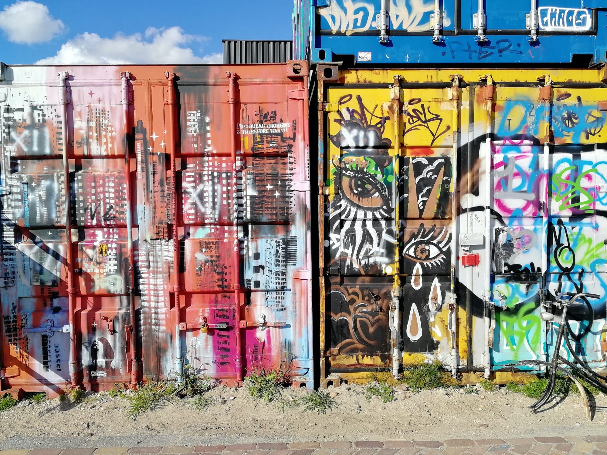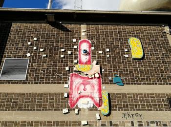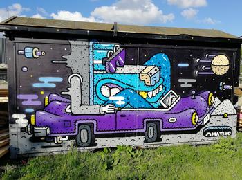 The artwork is of graffiti type. You can admire it in the city of Amsterdam in Netherlands and more precisely here : T.T. Neveritaweg 25, 1033 WB Amsterdam, Pays-Bas.