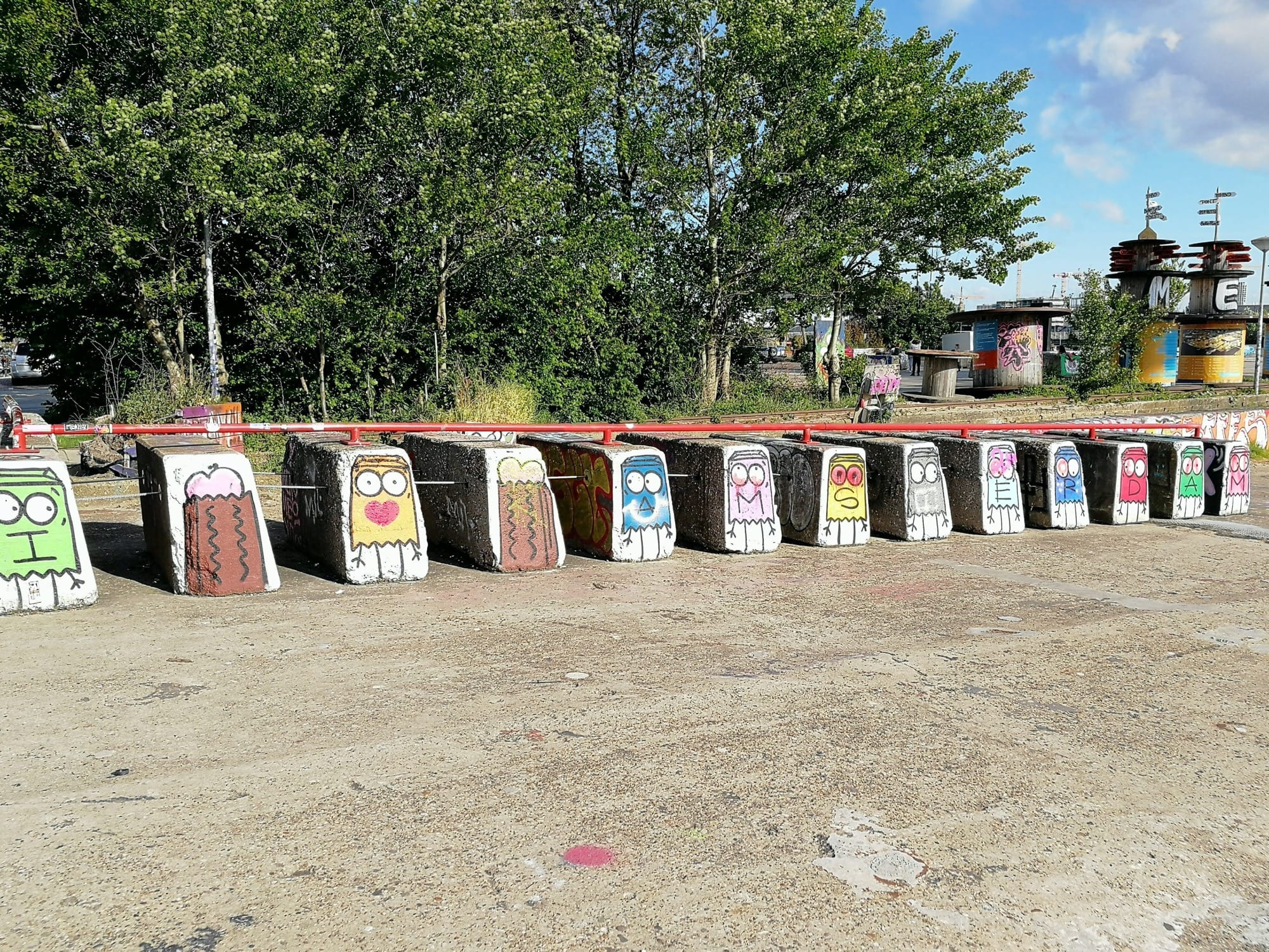 The artwork is of graffiti type. You can admire it in the city of Amsterdam in Netherlands and more precisely here : WB, NDSM-Plein 76, Amsterdam, Pays-Bas.