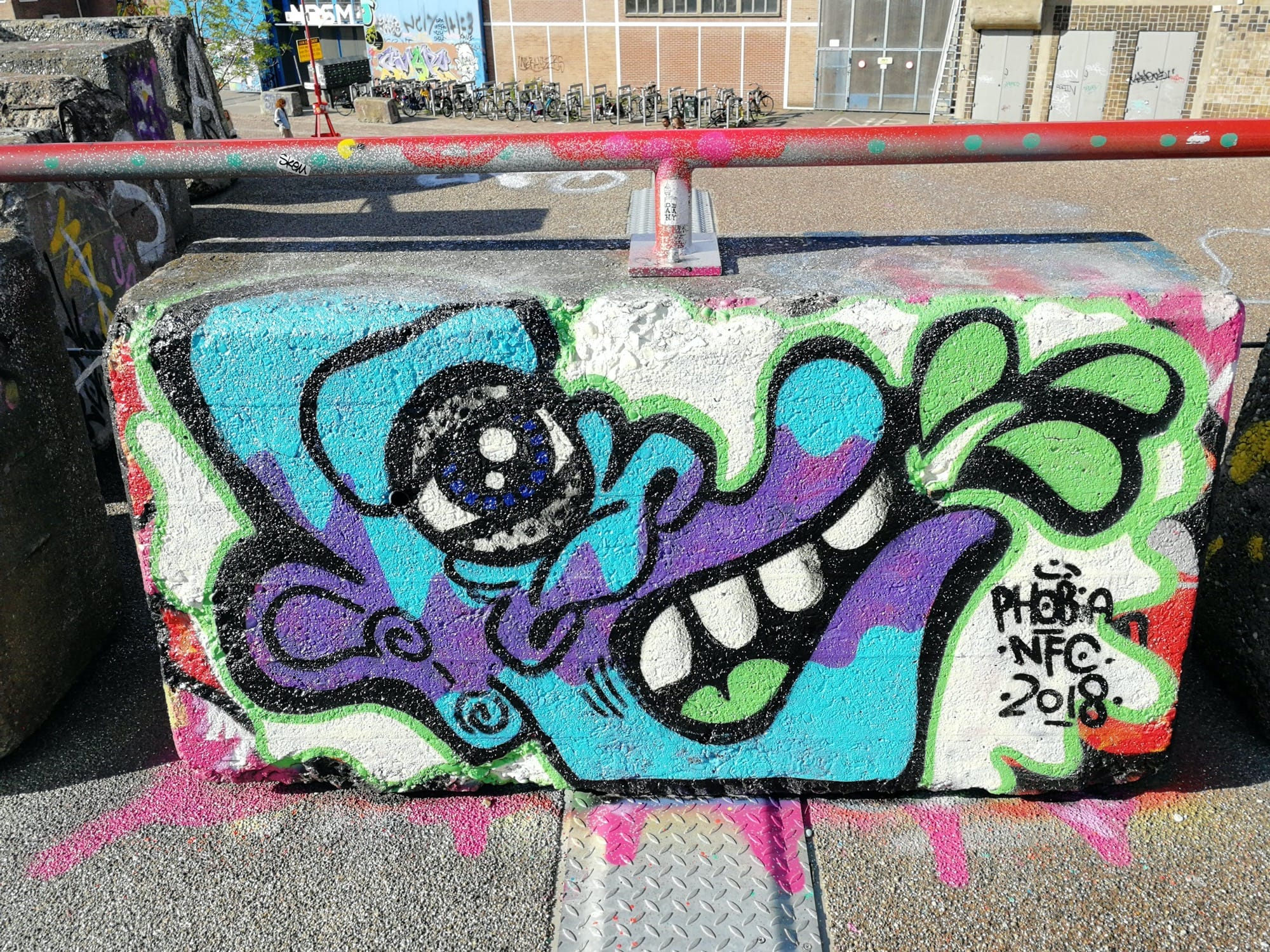 The artwork is of graffiti type. You can admire it in the city of Amsterdam in Netherlands and more precisely here : T.T. Neveritaweg 15 K4, 1033 WB Amsterdam, Pays-Bas.