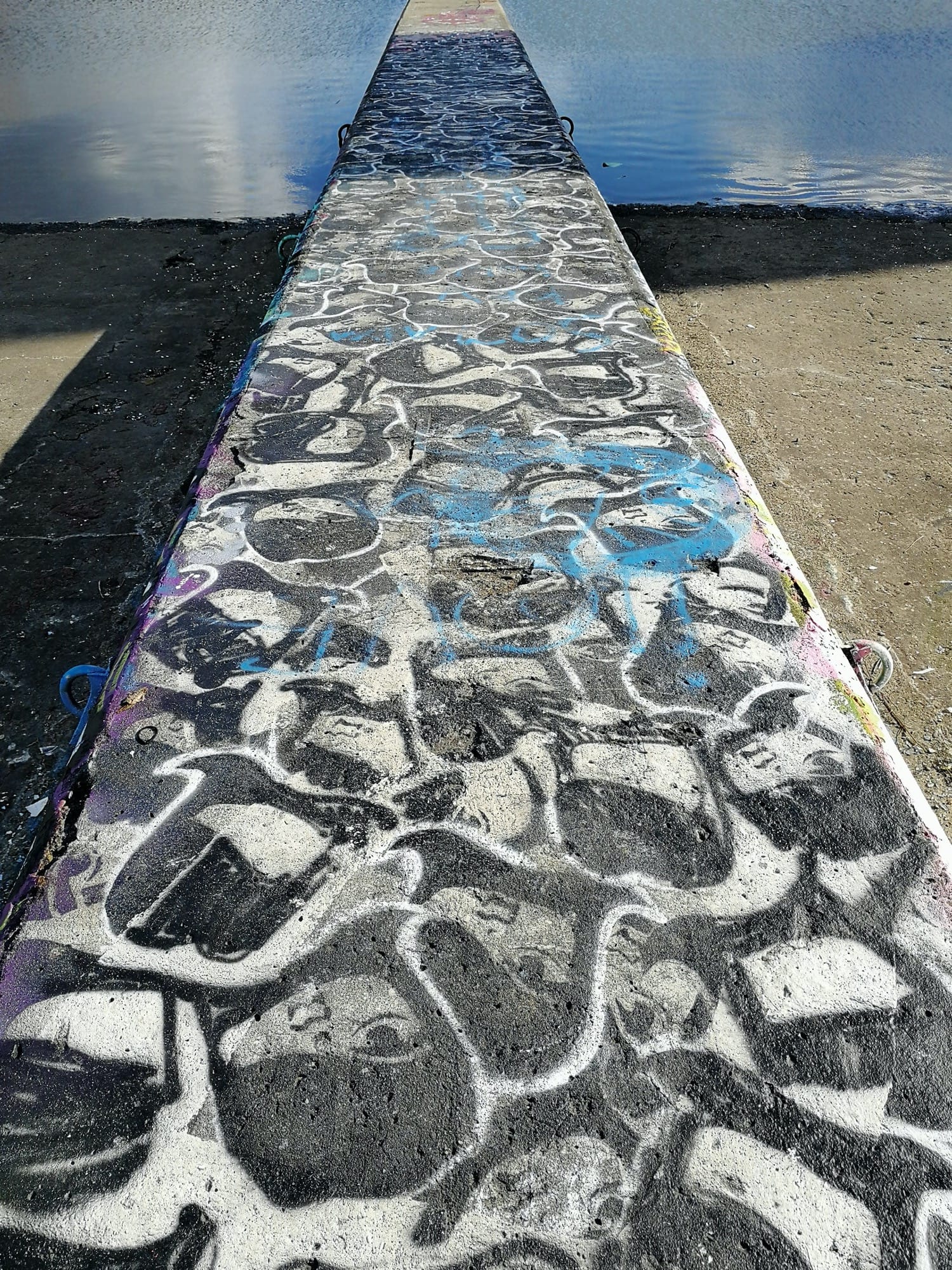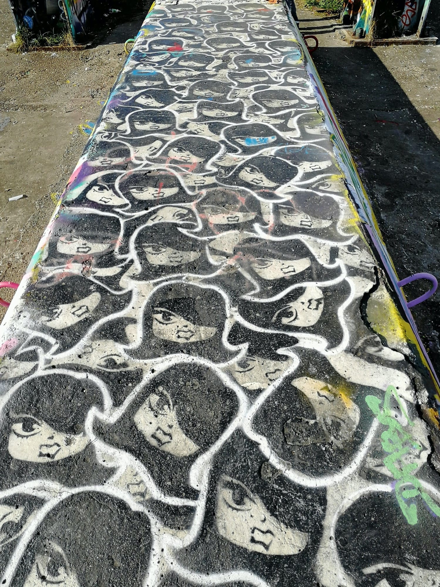 The artwork is of graffiti type. You can admire it in the city of Amsterdam in Netherlands and more precisely here : NDSM-Plein 86a, 1033 WB Amsterdam, Pays-Bas.