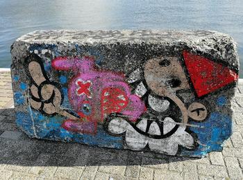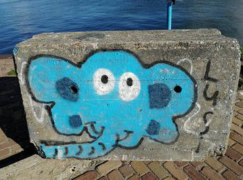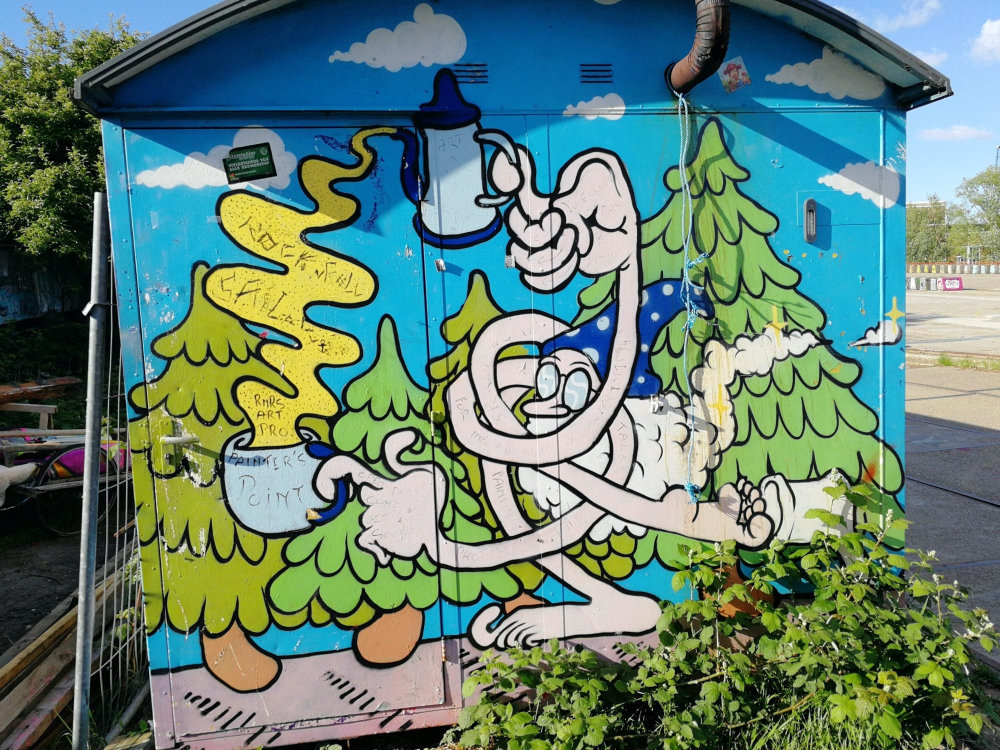The artwork is of graffiti type. You can admire it in the city of Amsterdam in Netherlands and more precisely here : T.T. Neveritaweg 33, 1033 WB Amsterdam, Pays-Bas.