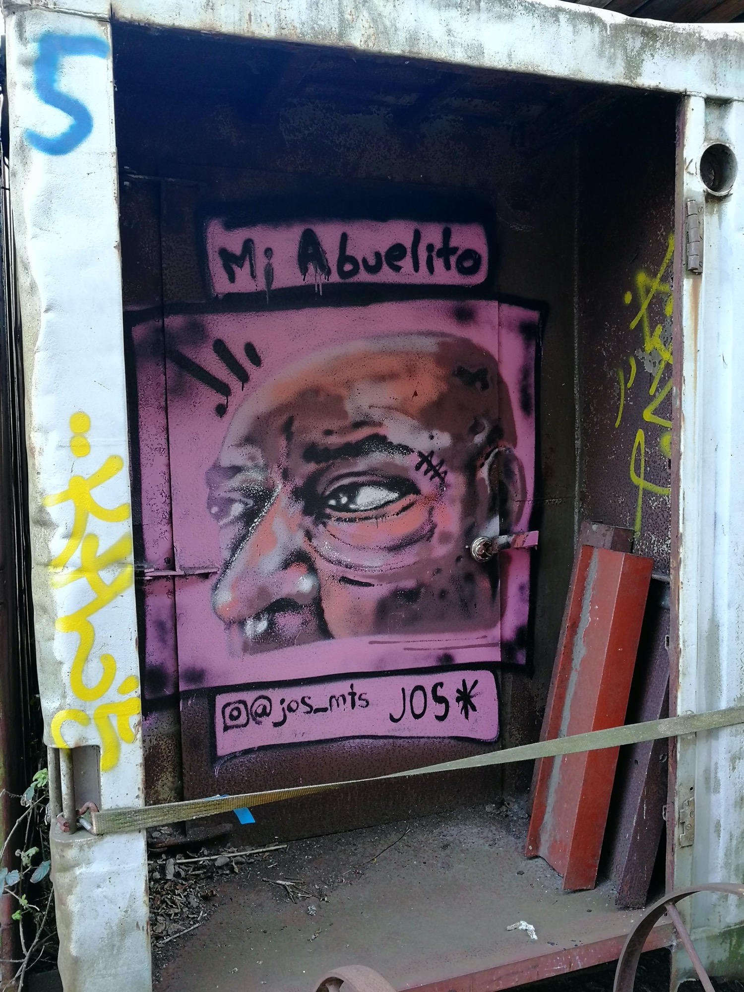 The artwork is of graffiti type. You can admire it in the city of Amsterdam in Netherlands and more precisely here : NDSM-Plein 86a, 1033 WB Amsterdam, Pays-Bas.