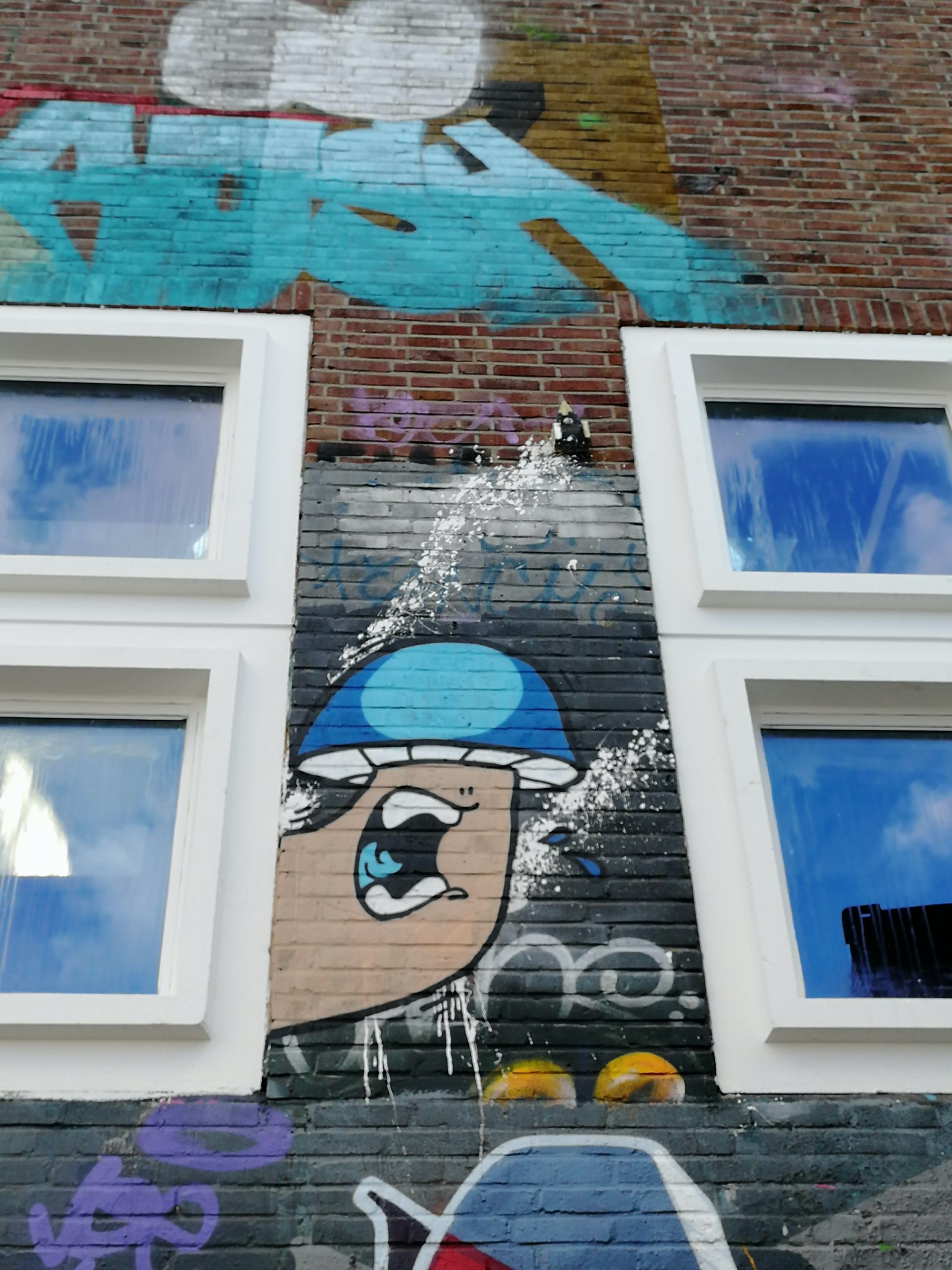 The artwork is of graffiti type. You can admire it in the city of Amsterdam in Netherlands and more precisely here : 15 T.T. Neveritaweg 15 unit K3, 1033 WB Amsterdam, Pays-Bas.